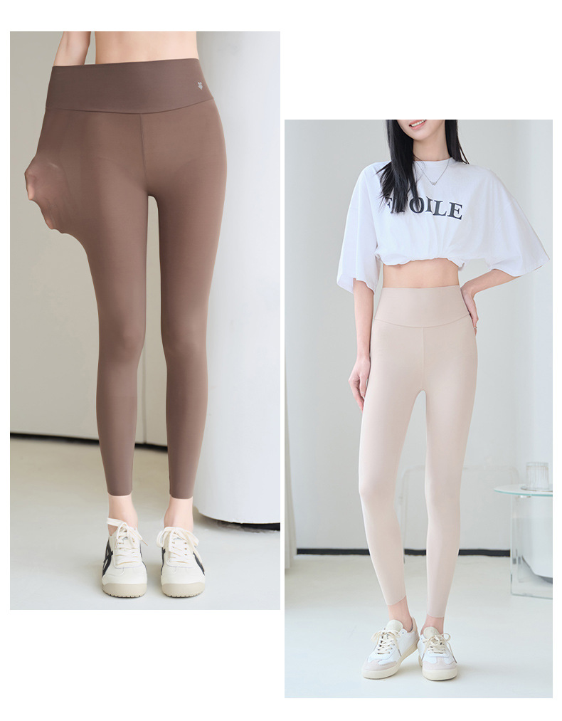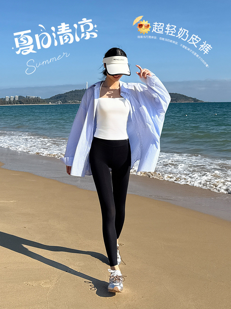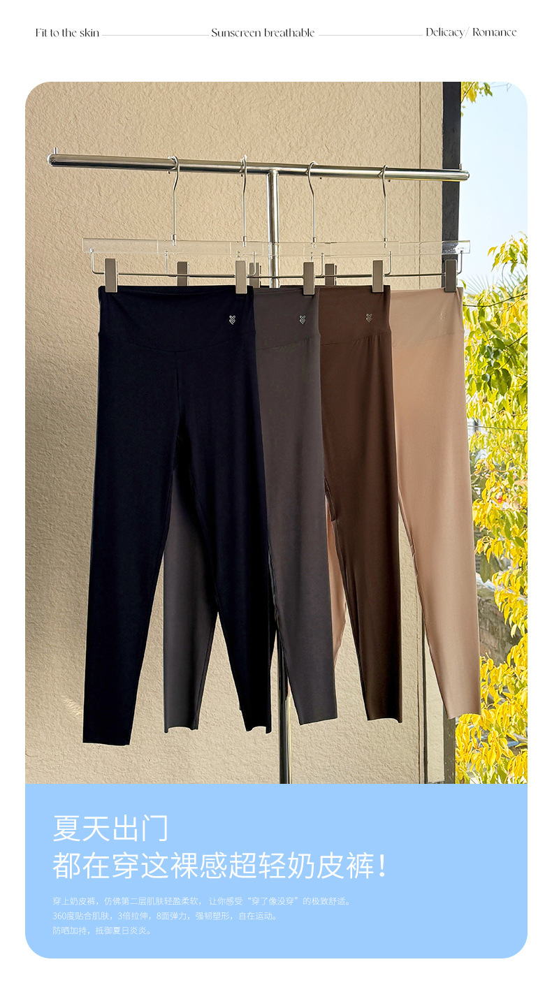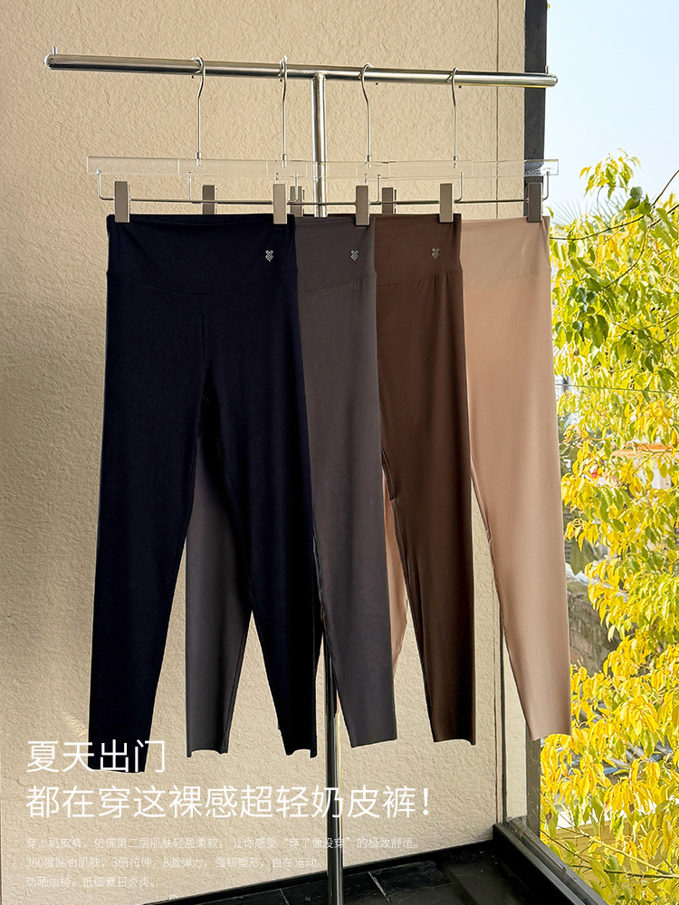89088#超轻奶皮裤高腰外穿哑光收腹瑜伽芭比裤超弹无痕打底防晒裤