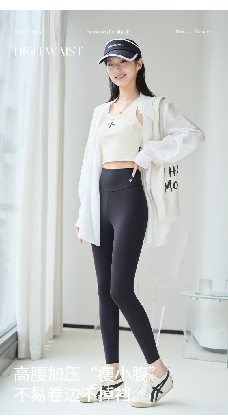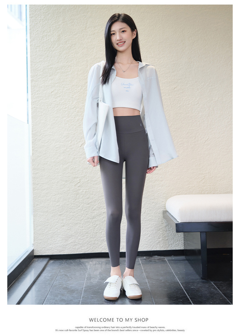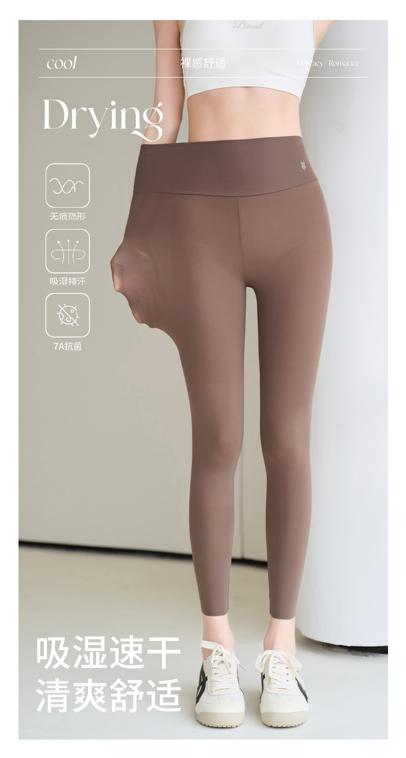 89088#超轻奶皮裤高腰外穿哑光收腹瑜伽芭比裤超弹无痕打底防晒裤