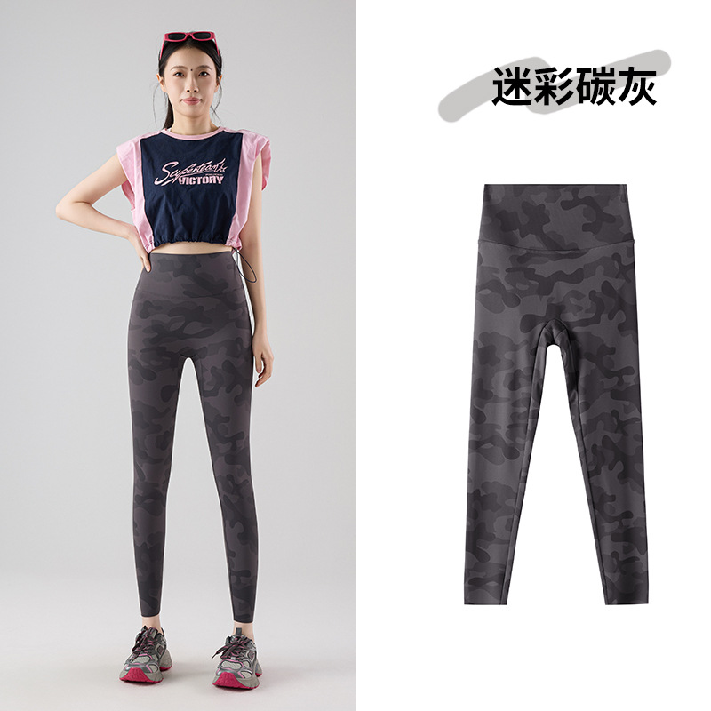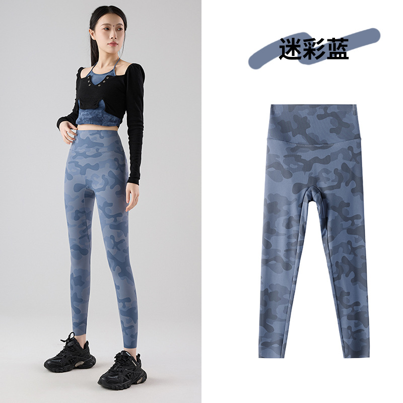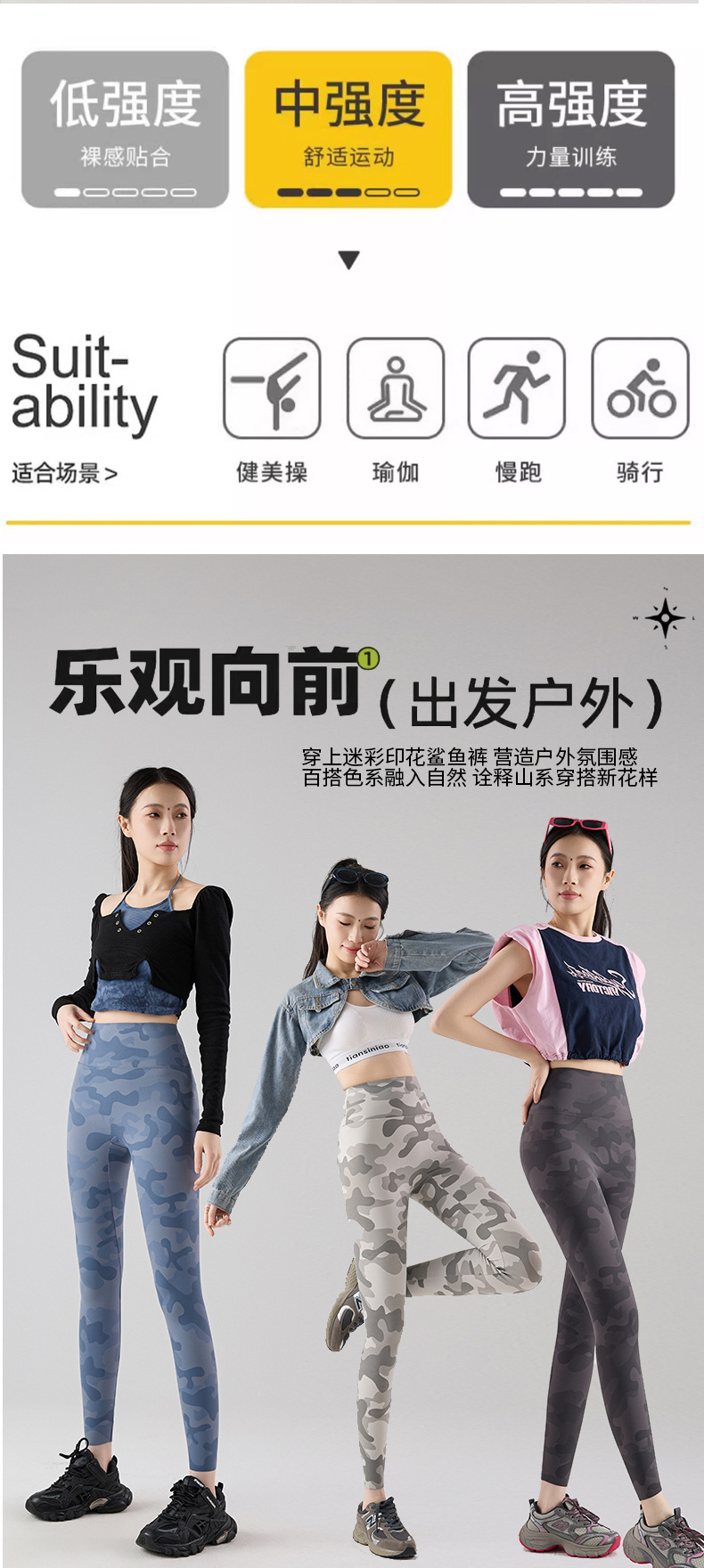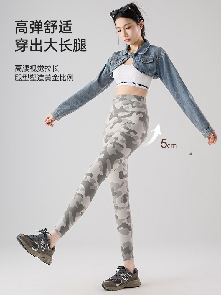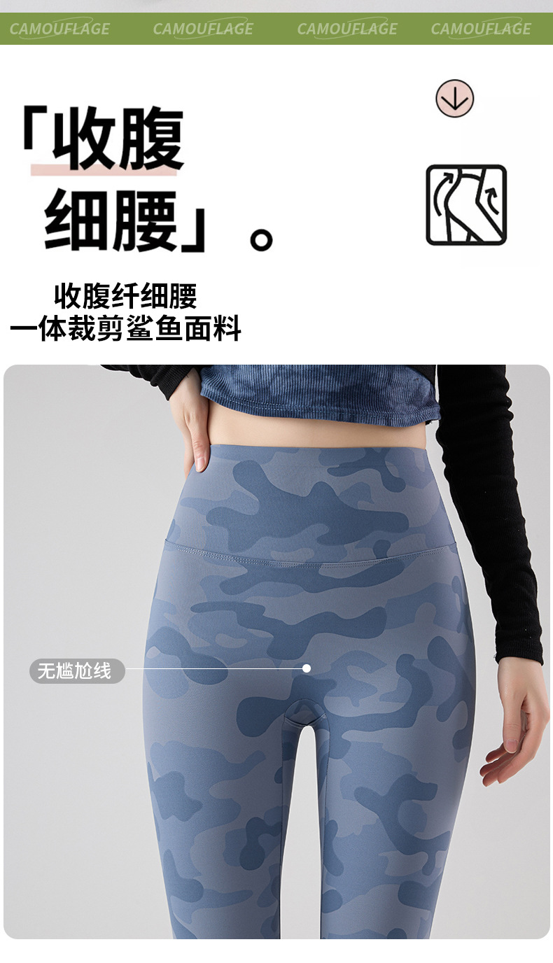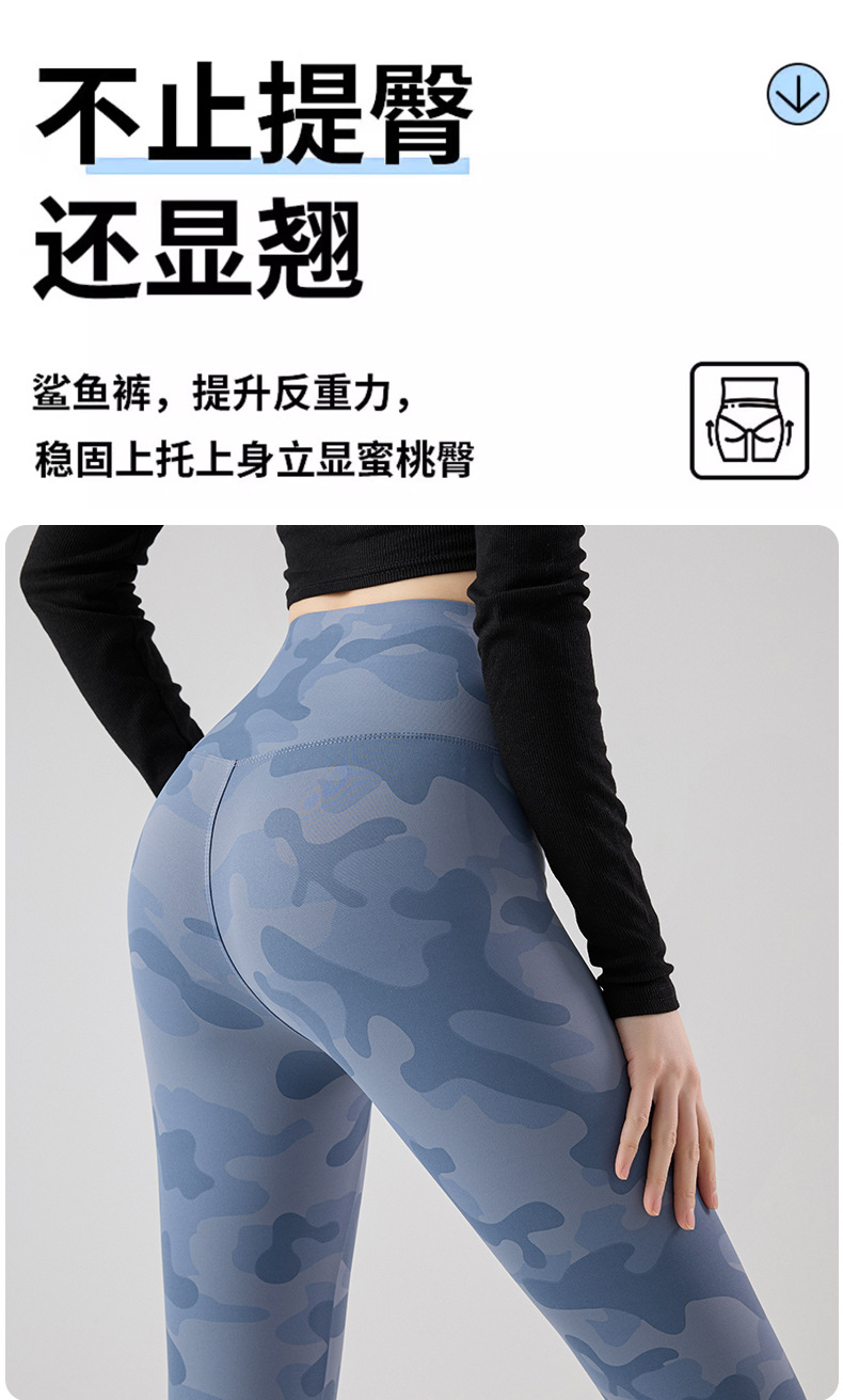 迷彩芭比裤春夏新款女外穿鲨鱼裤收腹瑜伽九分打底裤无尴尬线修身