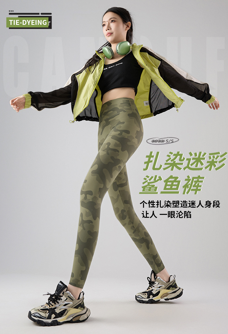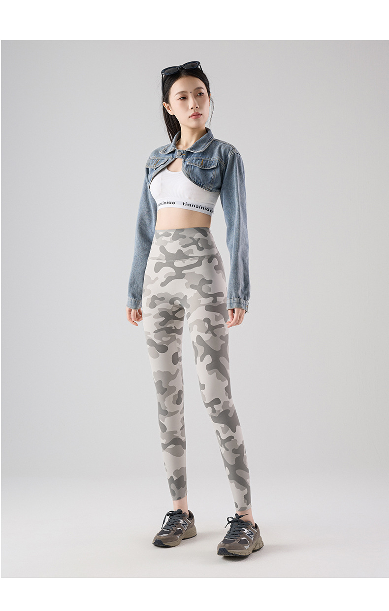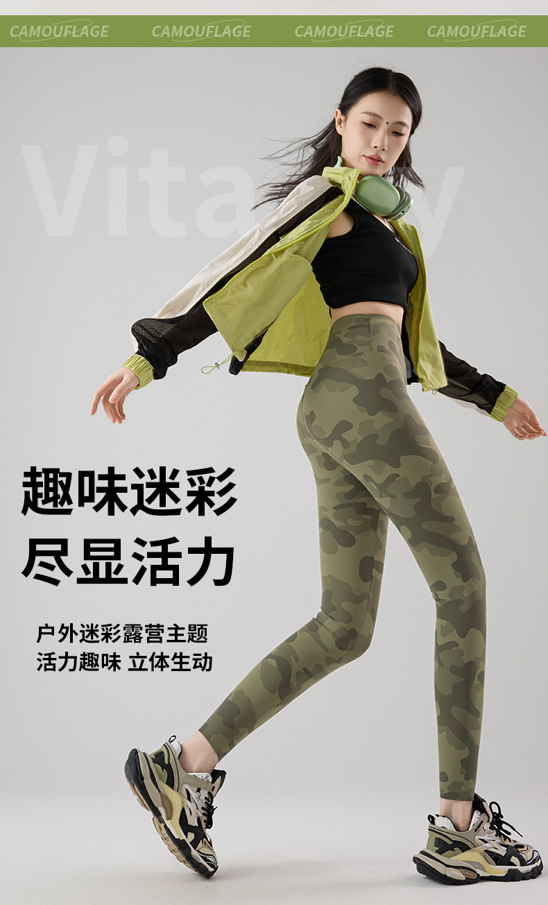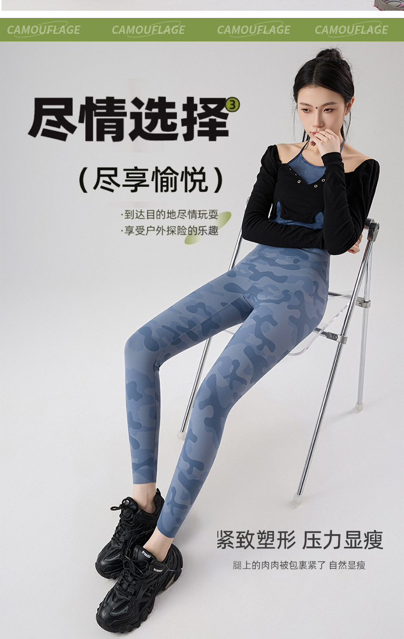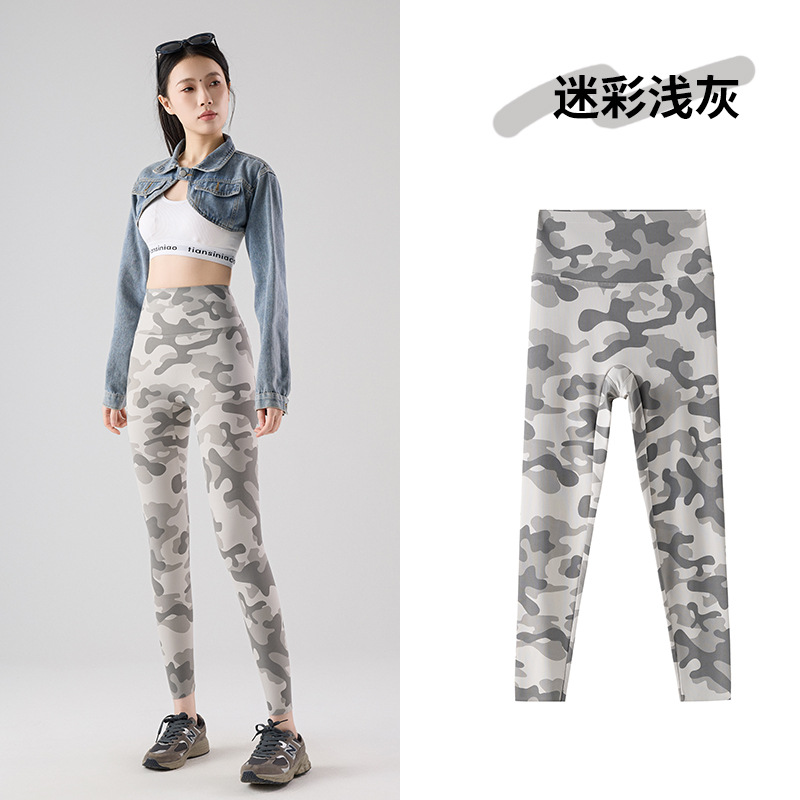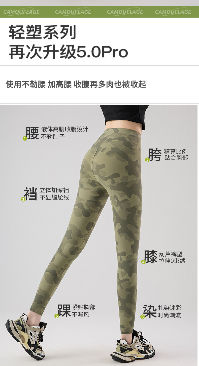 迷彩芭比裤春夏新款女外穿鲨鱼裤收腹瑜伽九分打底裤无尴尬线修身