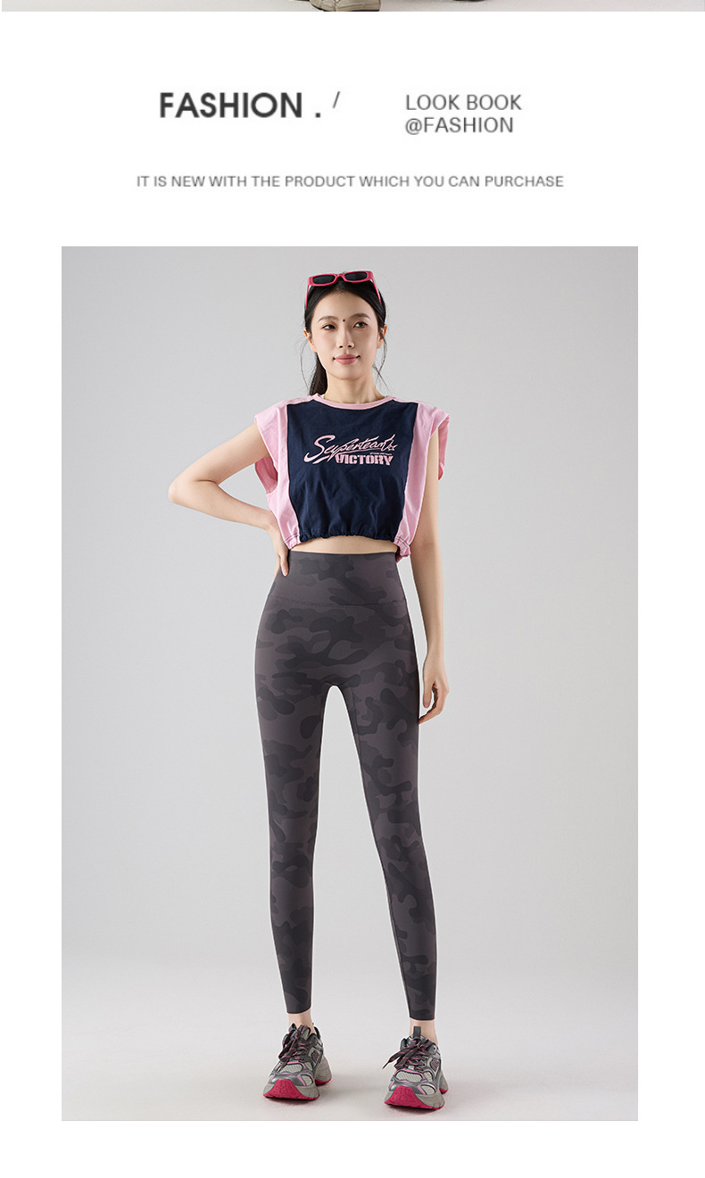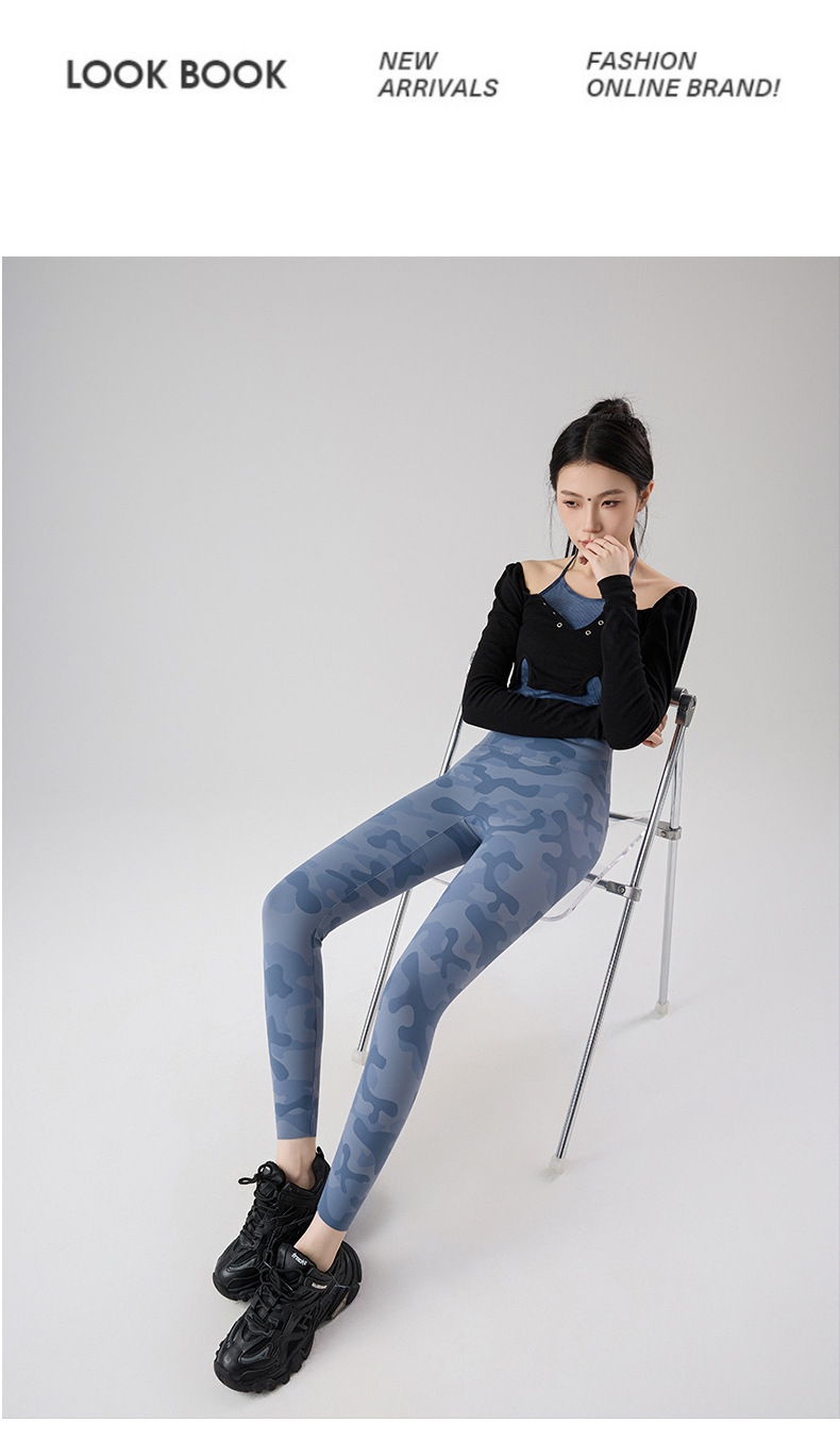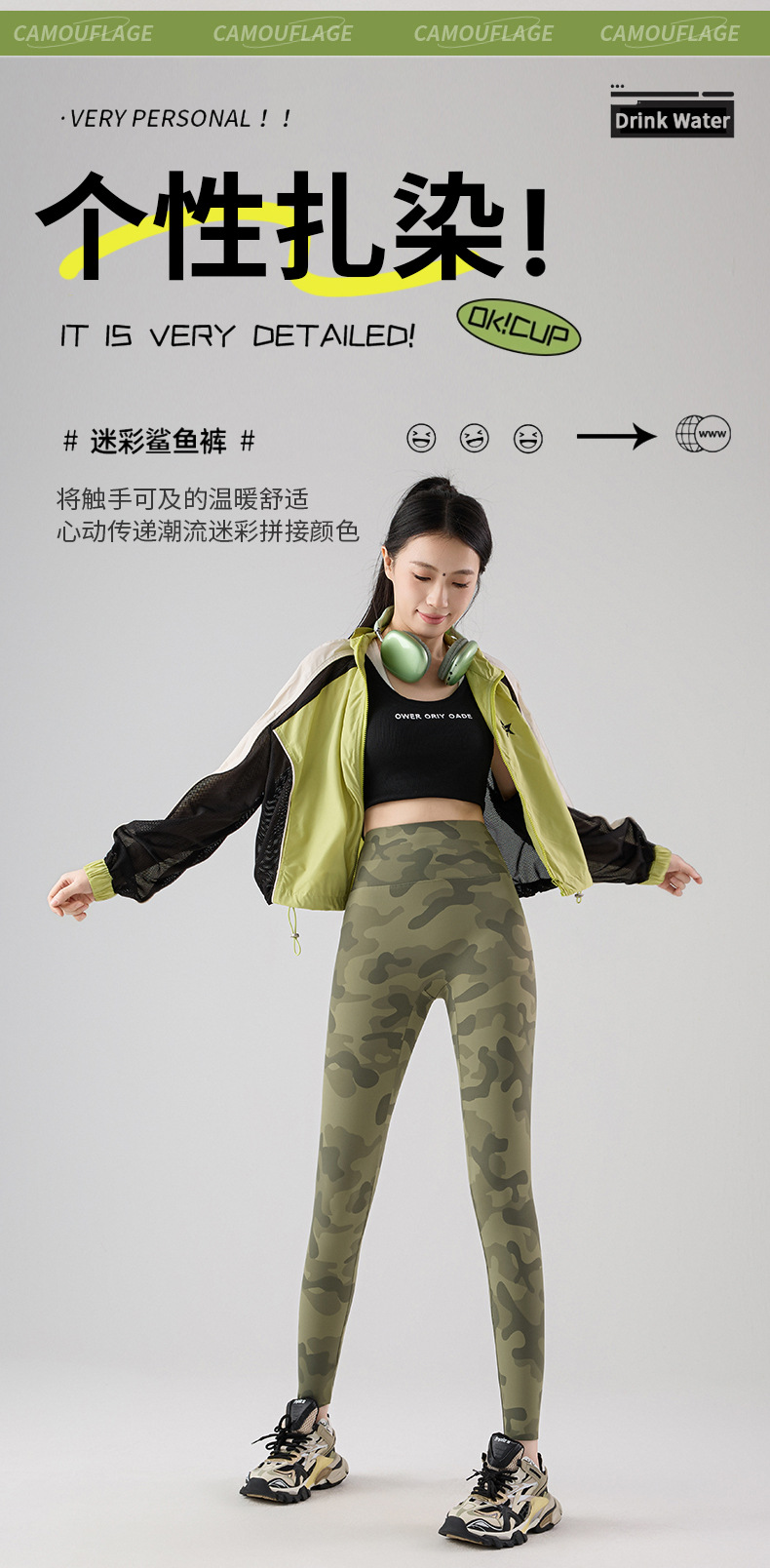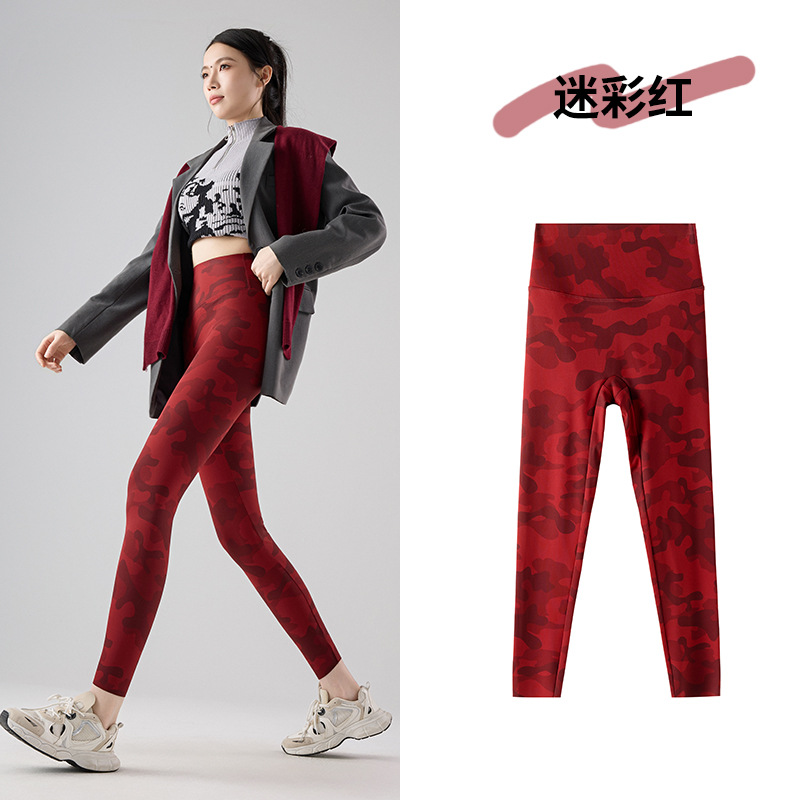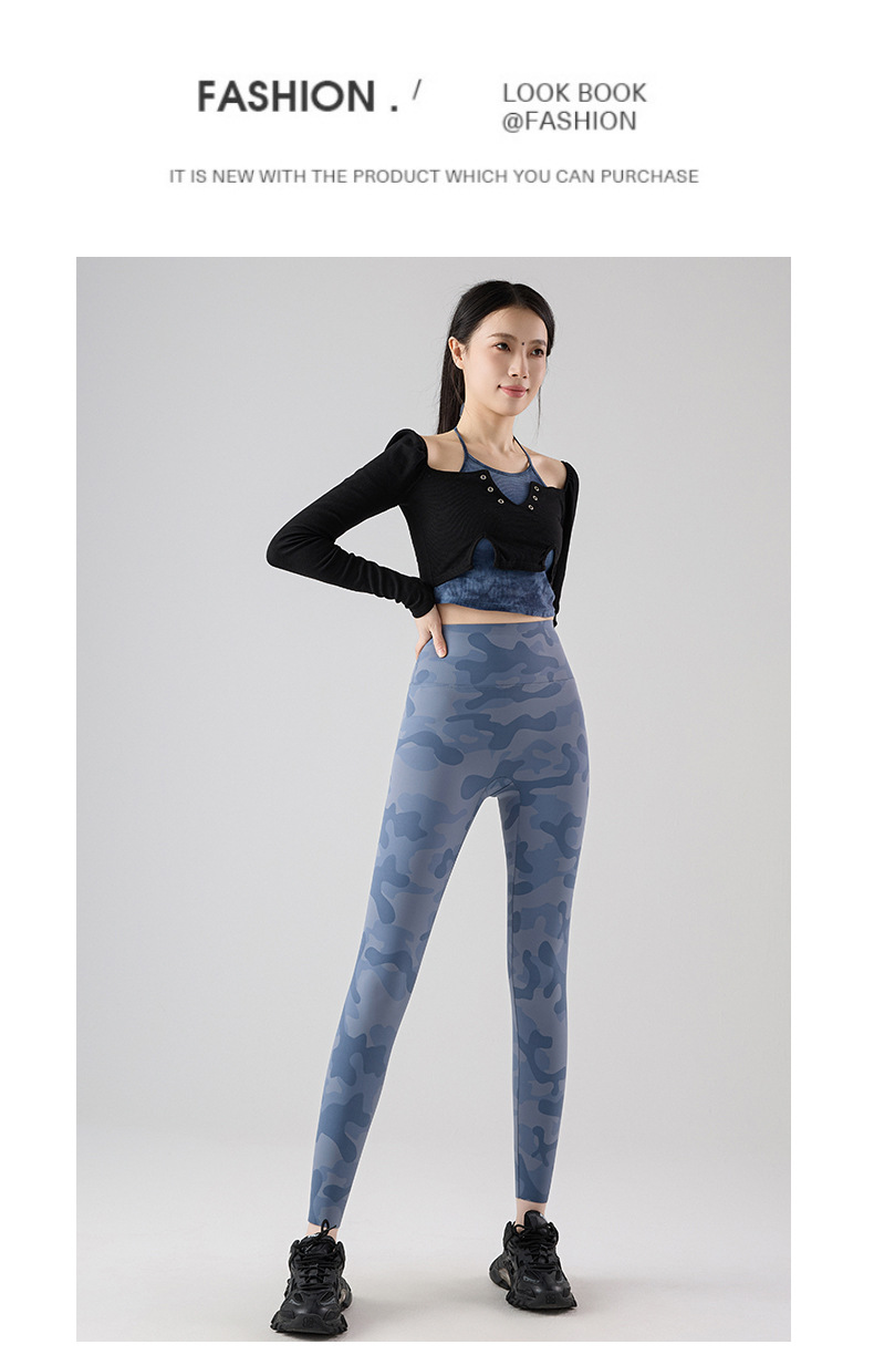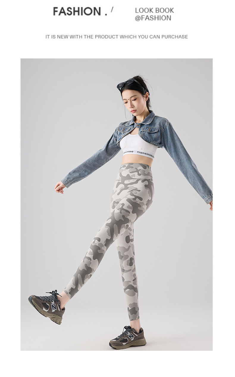 迷彩芭比裤春夏新款女外穿鲨鱼裤收腹瑜伽九分打底裤无尴尬线修身