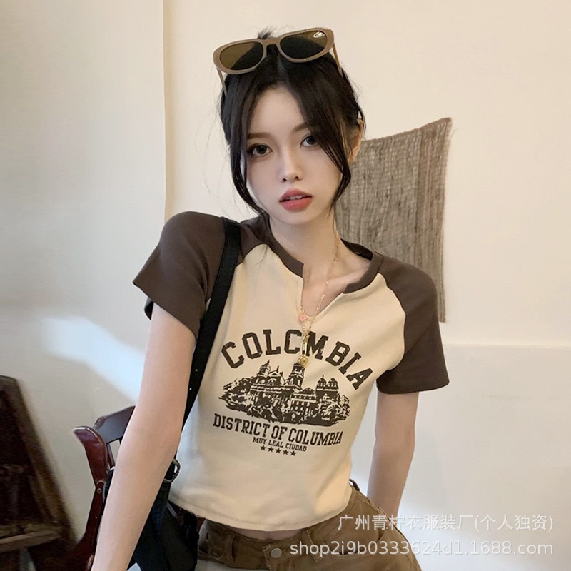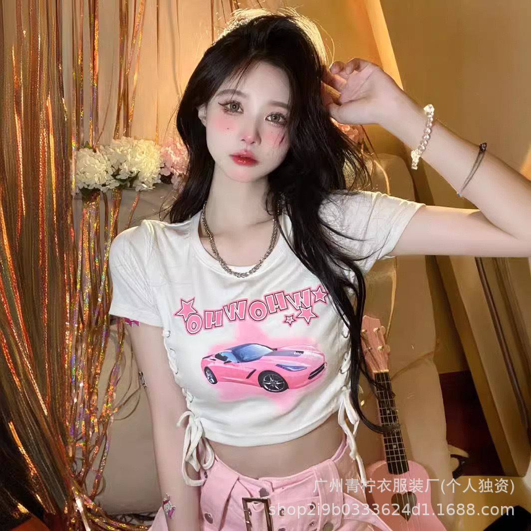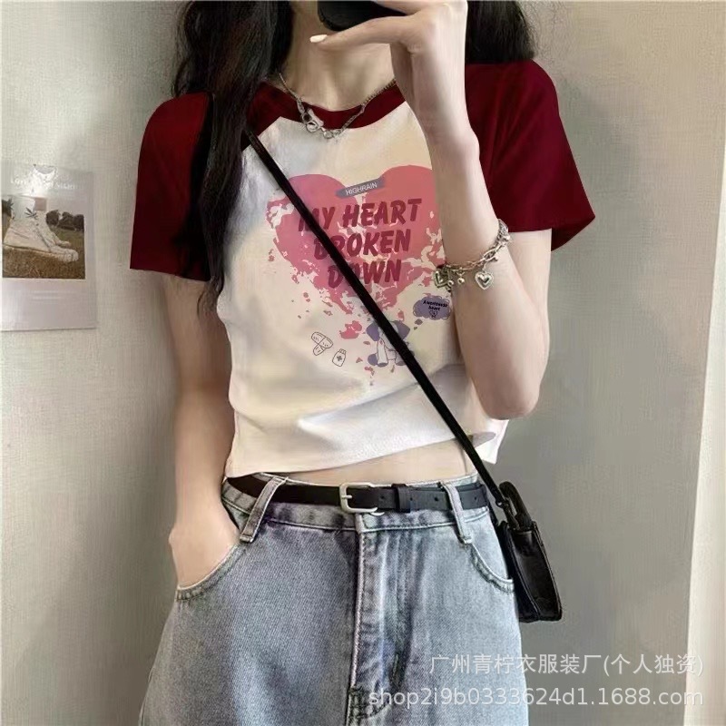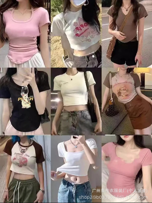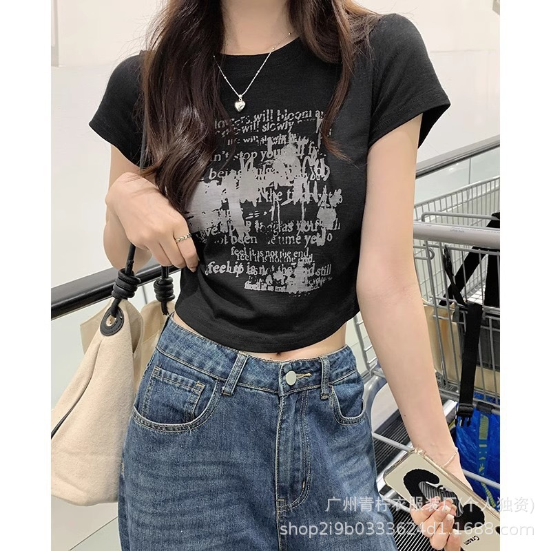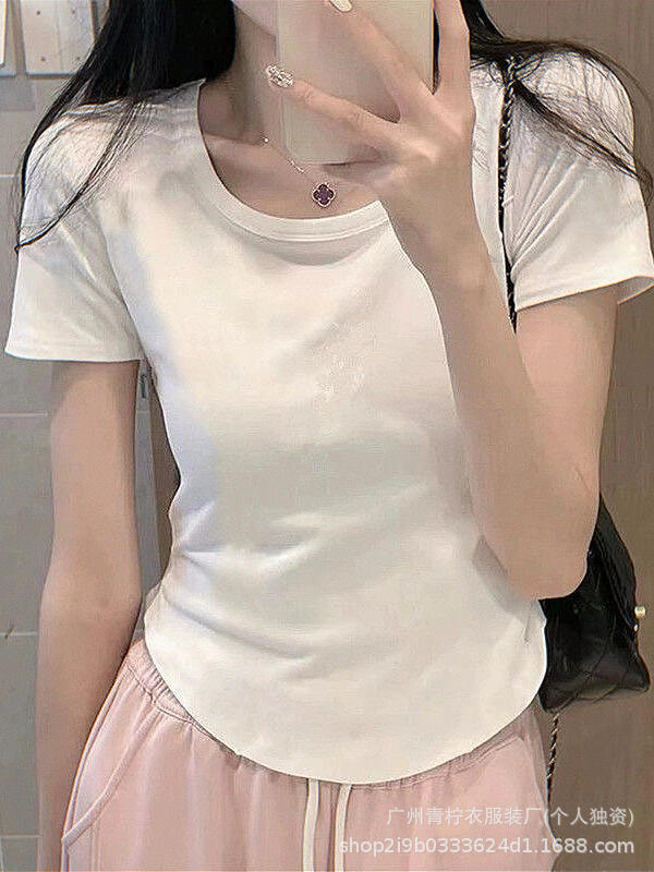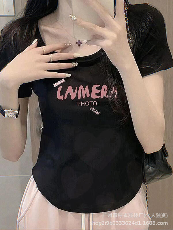 网红ins短款辣妹风上衣女2025夏季爆款小衫修身显瘦设计感短袖T恤