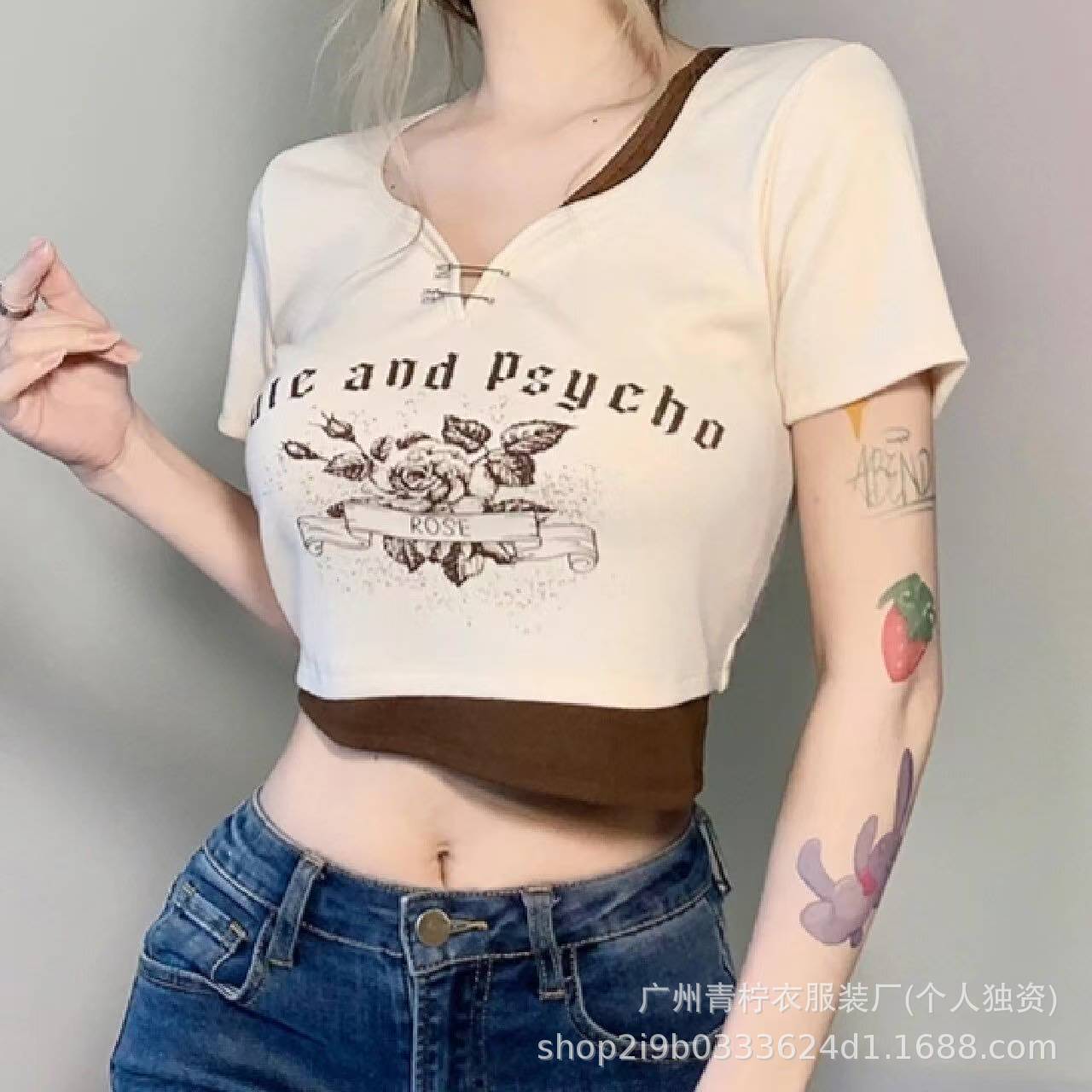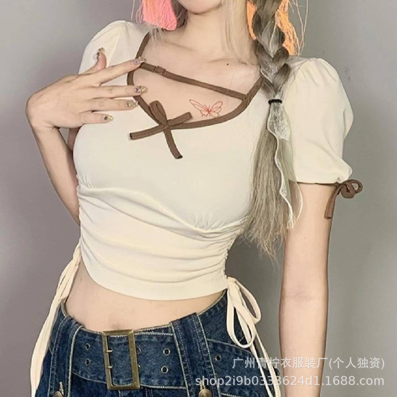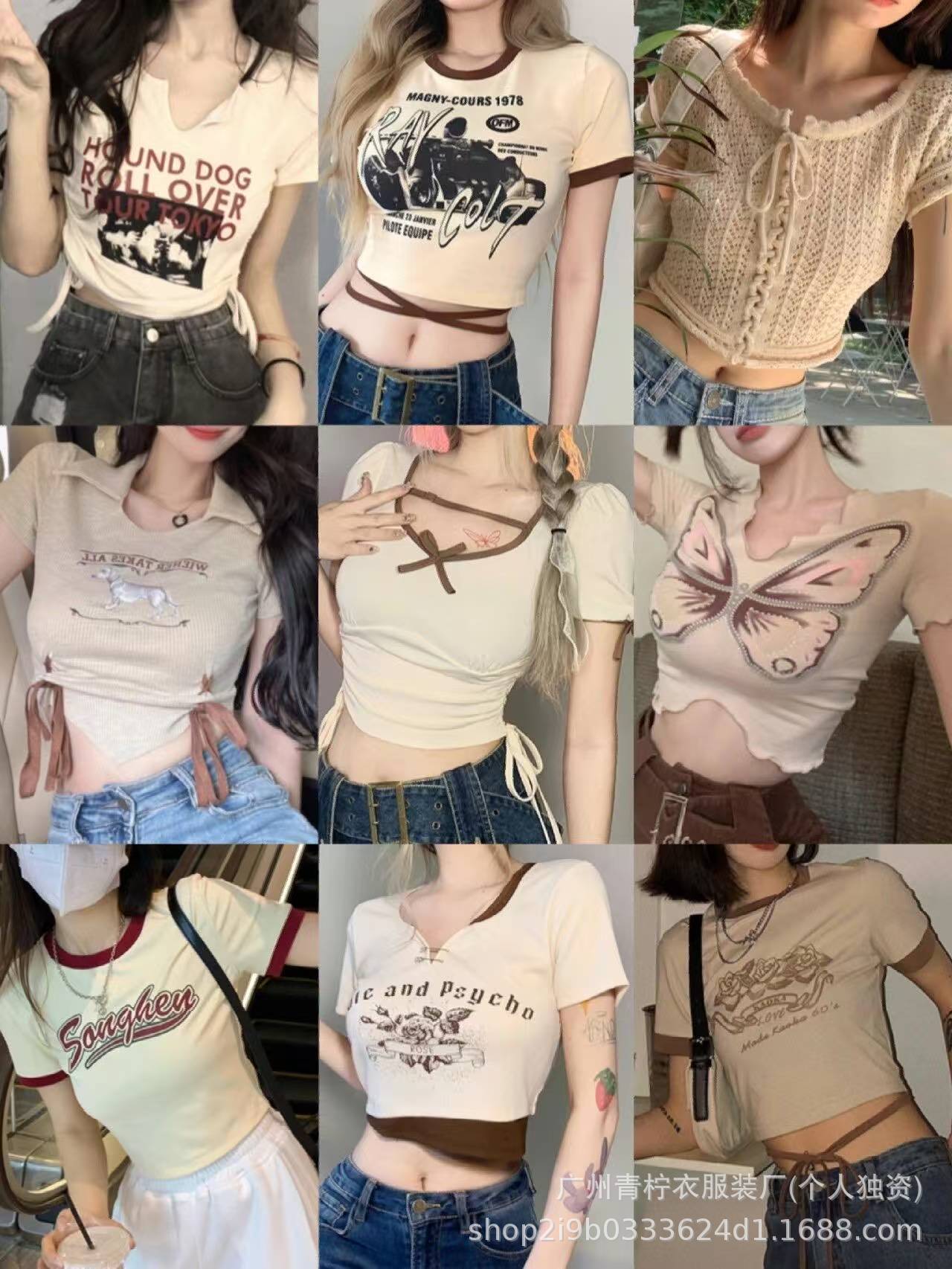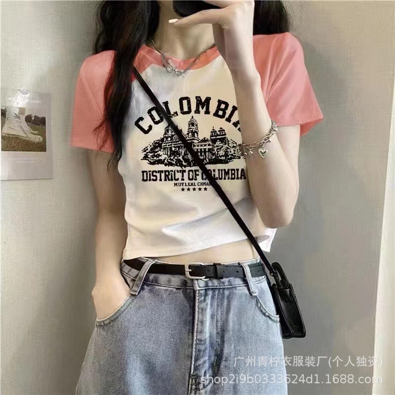 网红ins短款辣妹风上衣女2025夏季爆款小衫修身显瘦设计感短袖T恤