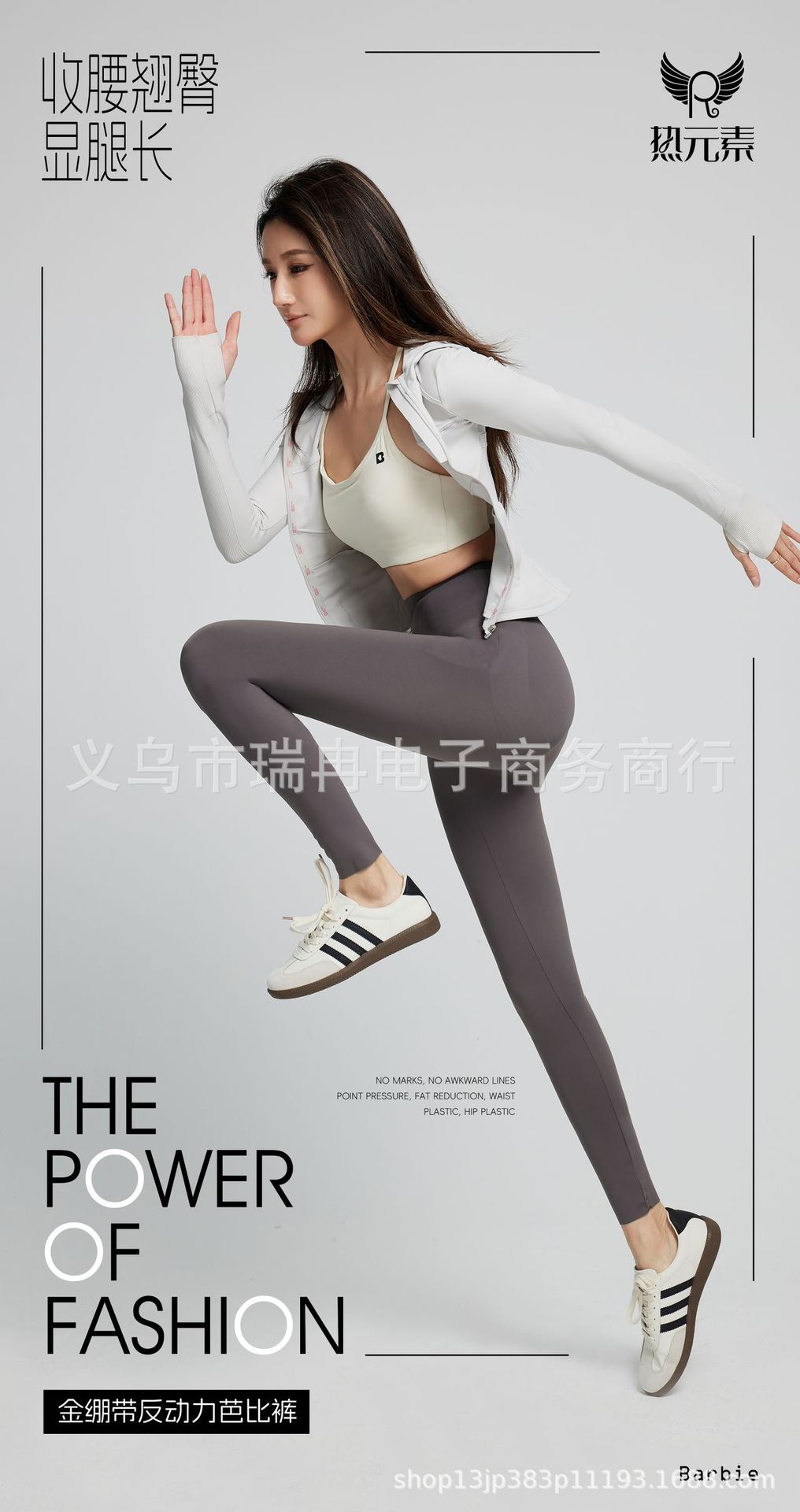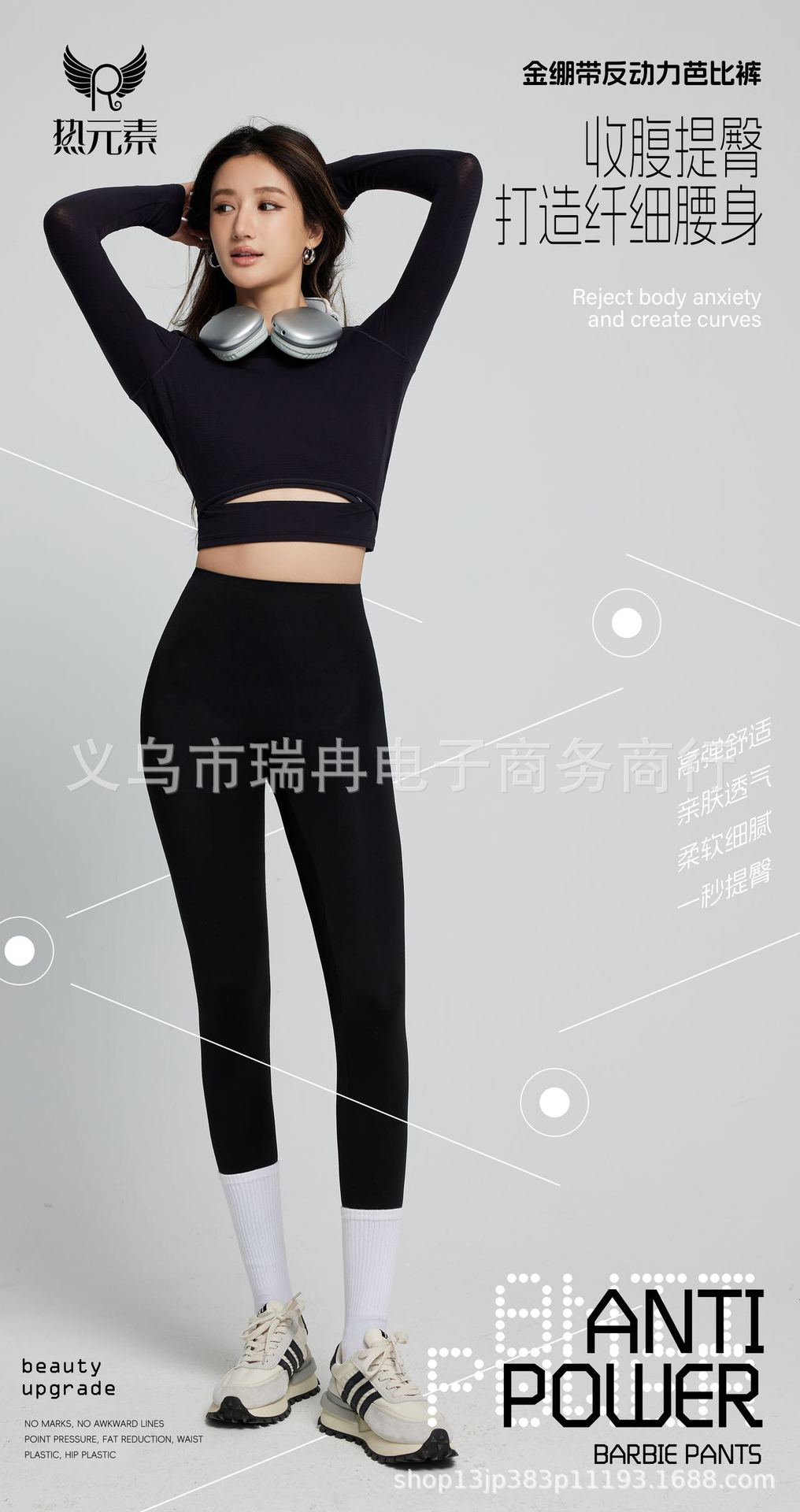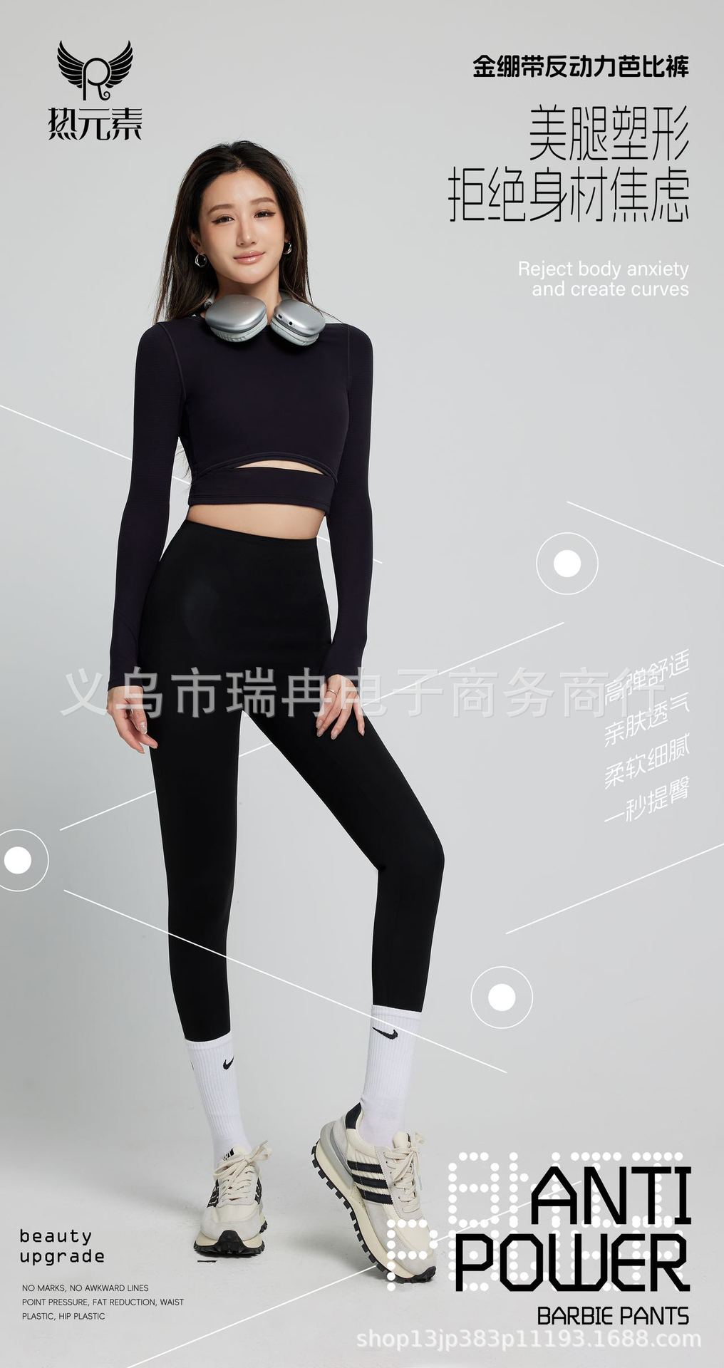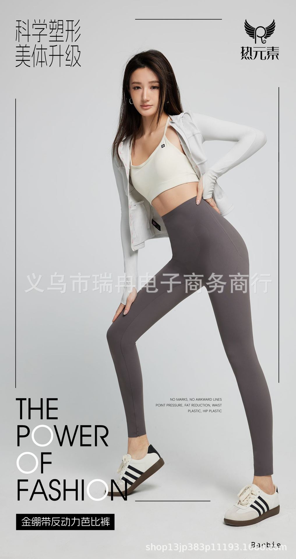 热元素金绷带反动力芭比裤女春季新款九分悬浮裤高腰显瘦打底裤女