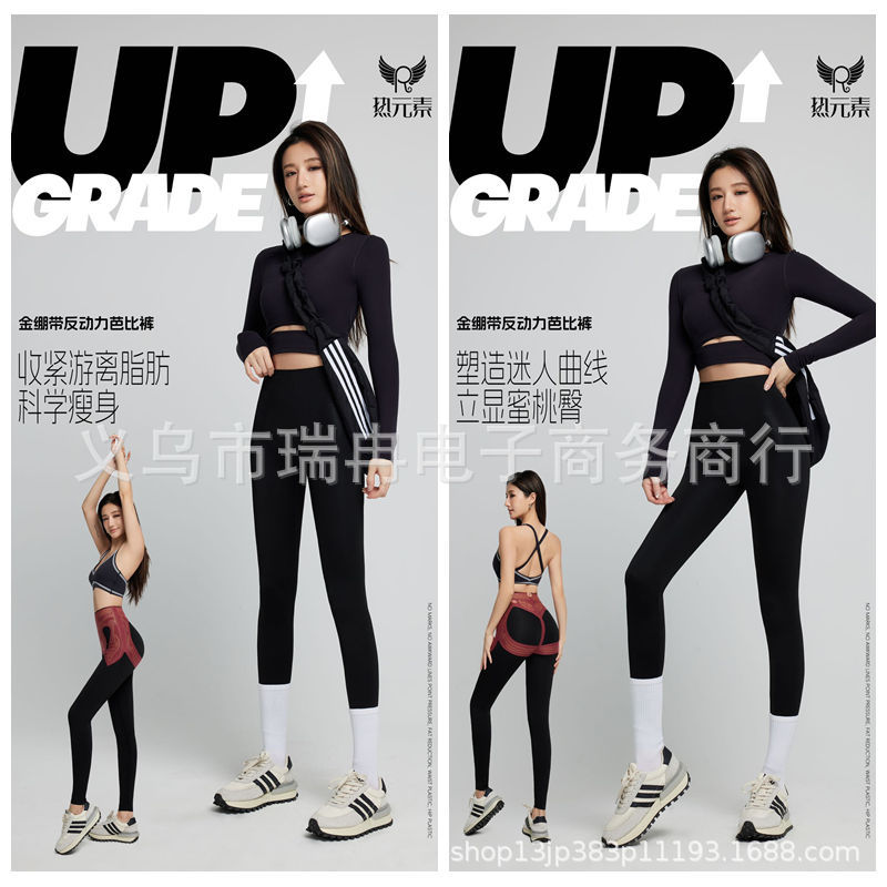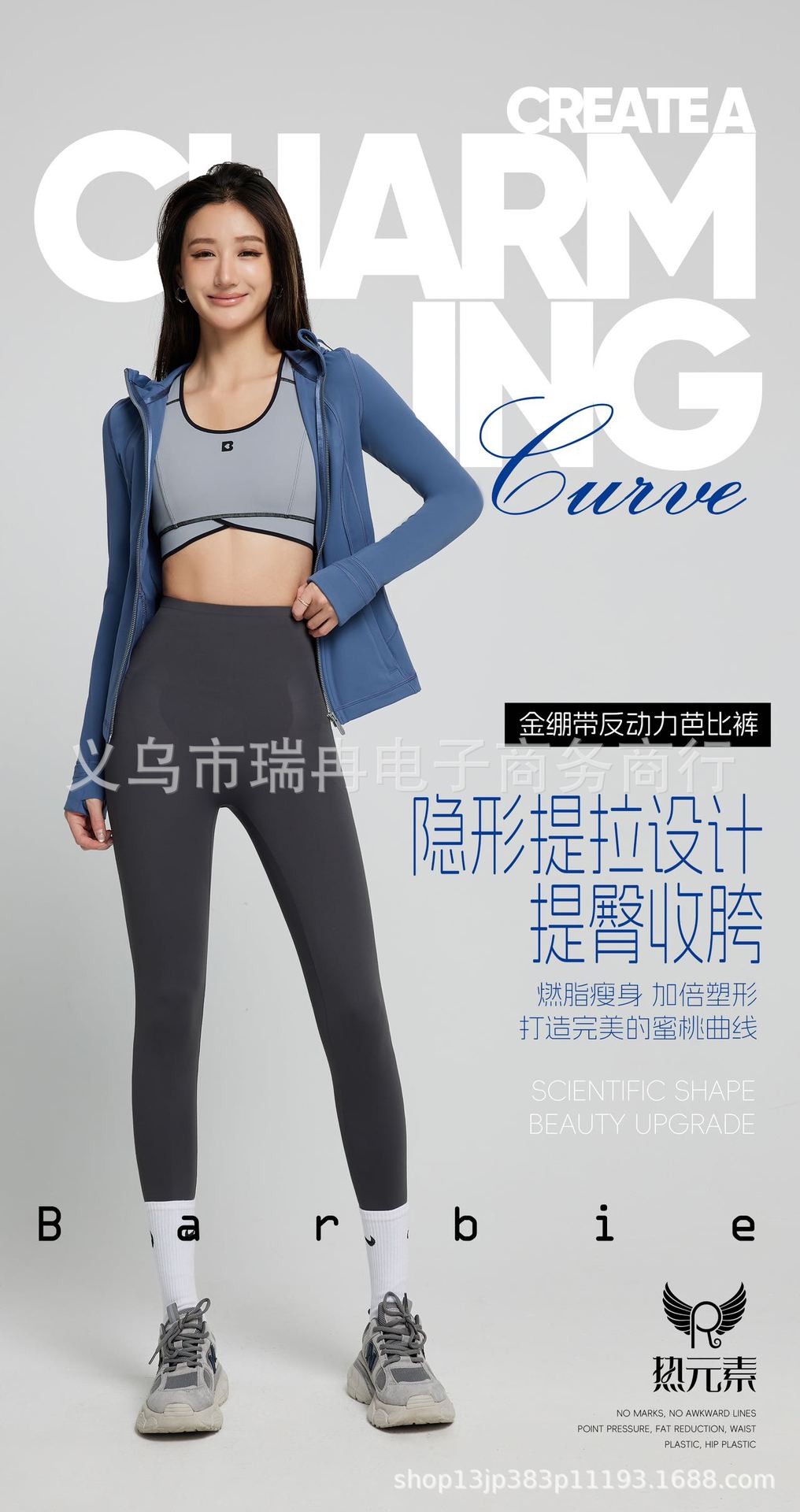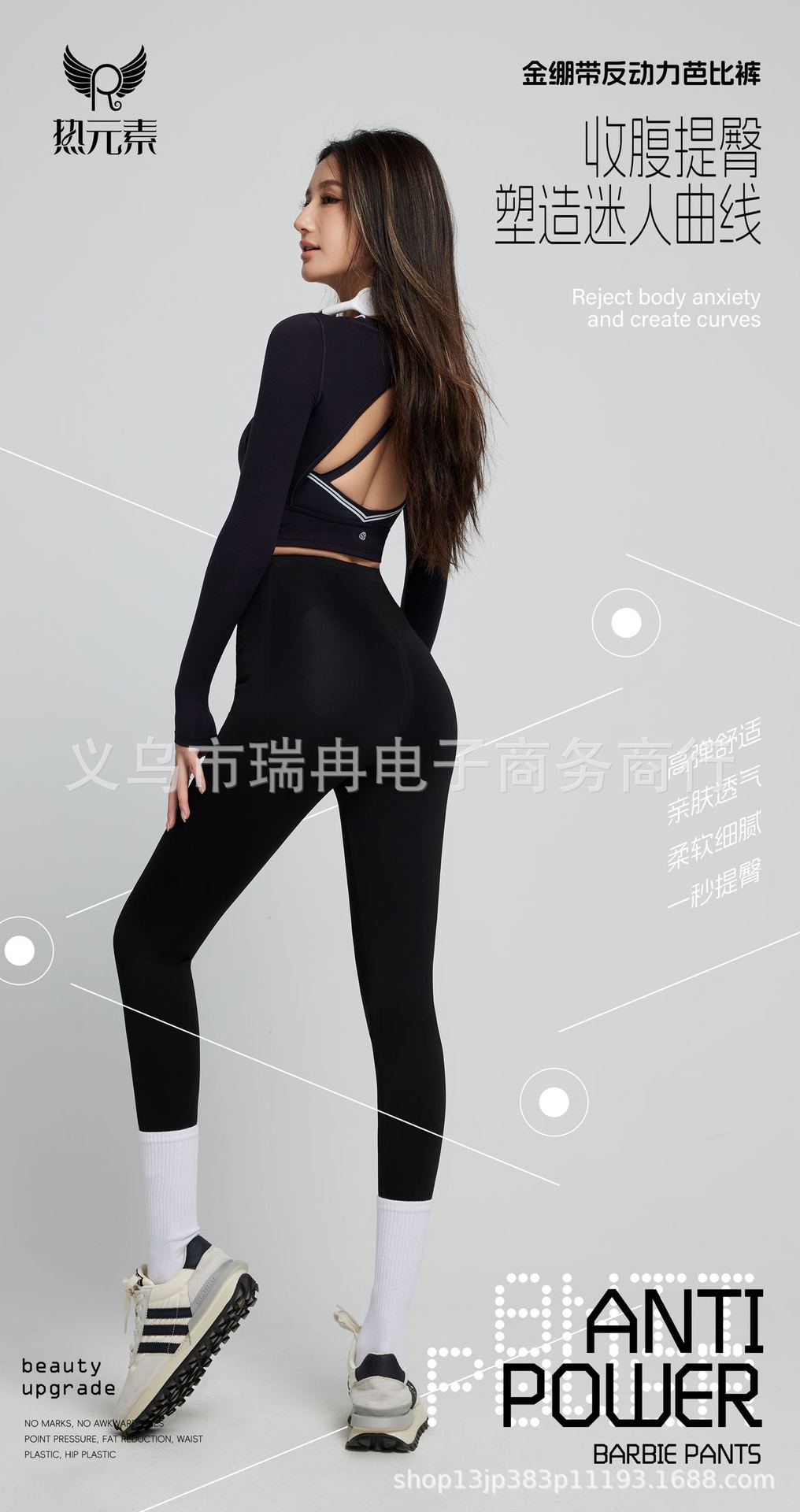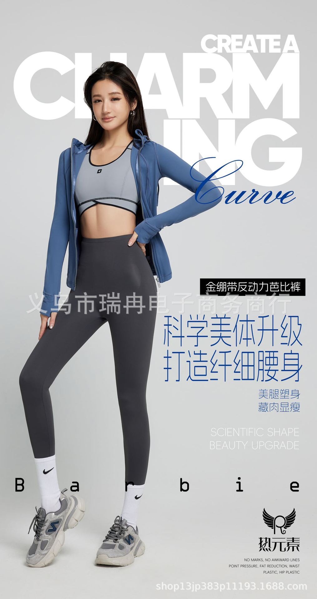 热元素金绷带反动力芭比裤女春季新款九分悬浮裤高腰显瘦打底裤女