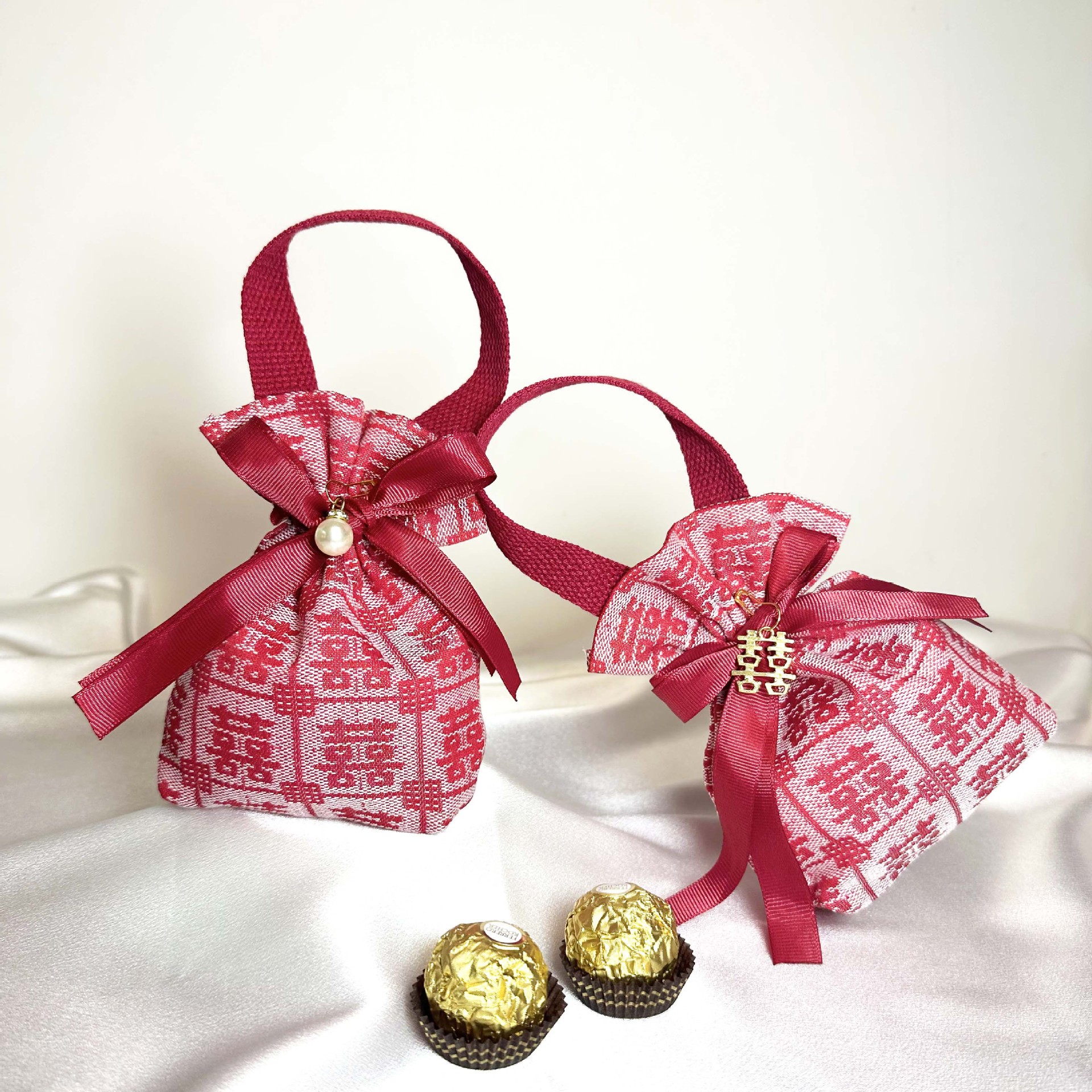 喜糖袋小红书爆婚礼伴手礼抽绳高级感手提喜糖盒喜字结婚简单大气