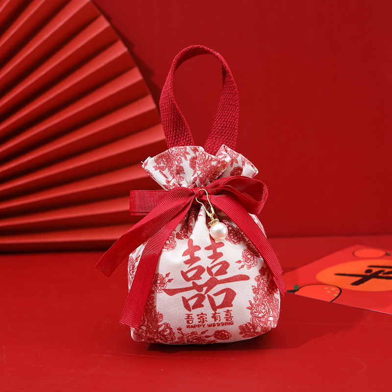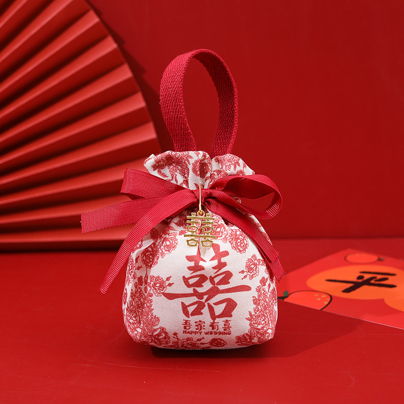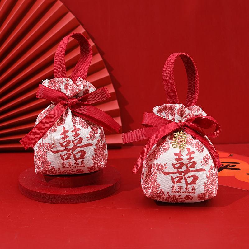 结婚喜糖花朵款喜糖盒礼盒新款专用布袋高级感喜糖袋帆布袋免折叠