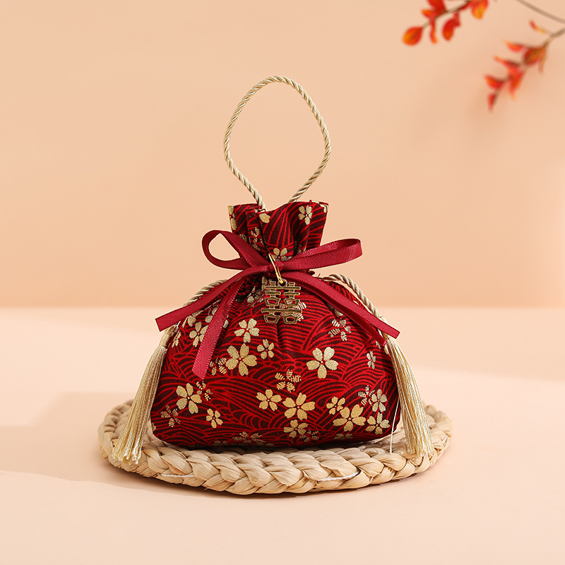 新中式婚礼复古喜糖袋丝绒袋高级感喜糖盒束口流苏免折叠伴手礼
