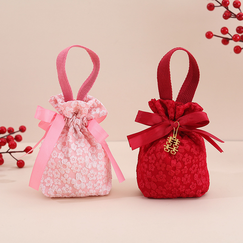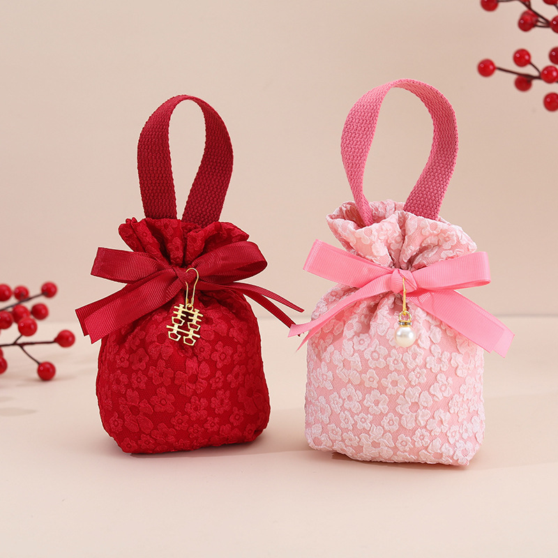 结婚喜糖盒手提喜糖袋高级感浮雕小花创意中式免折叠伴手礼