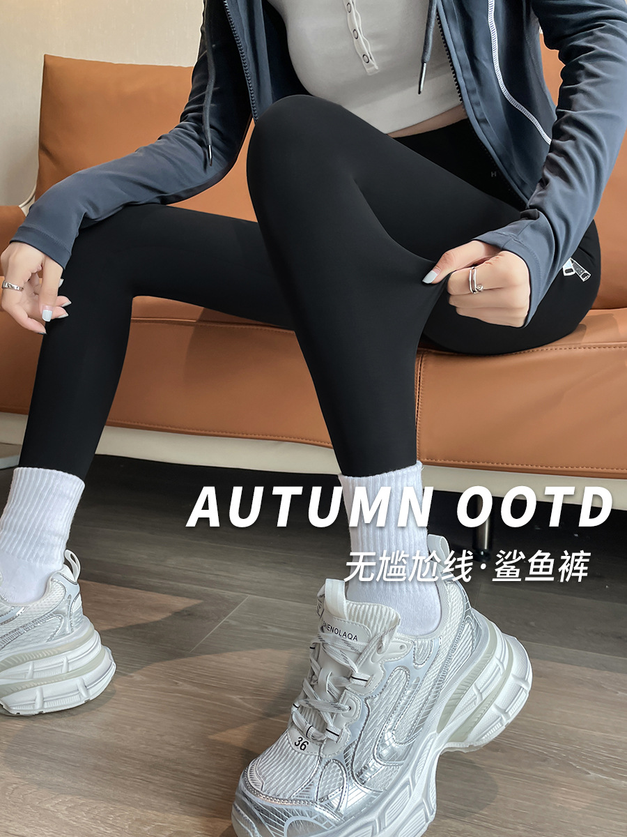 黑桃锦纶鲨鱼裤女高腰收腹修身显瘦紧身小脚芭比裤无尴尬线打底裤