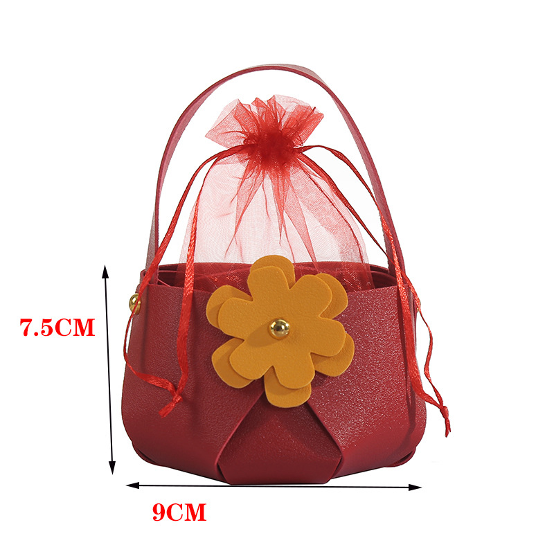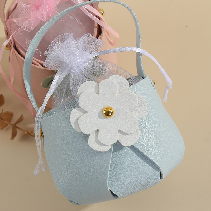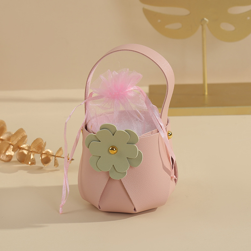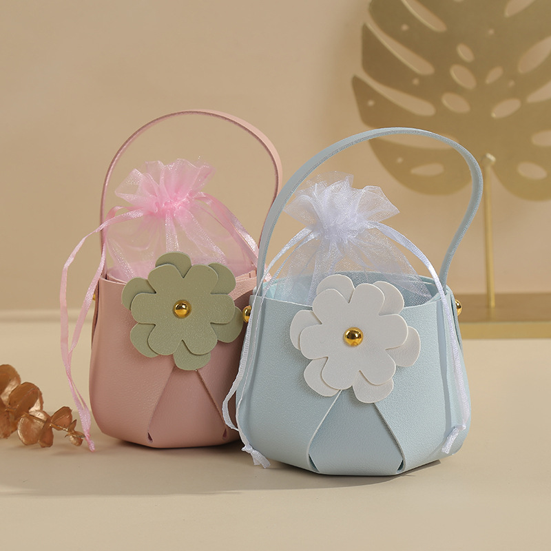 花朵皮桶喜糖盒结婚喜糖袋高级感创意手提伴手礼回礼空盒皮质糖盒