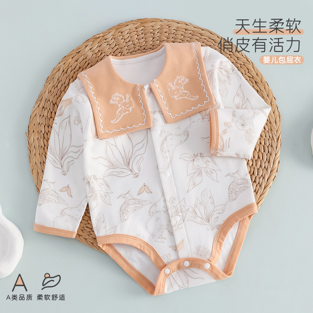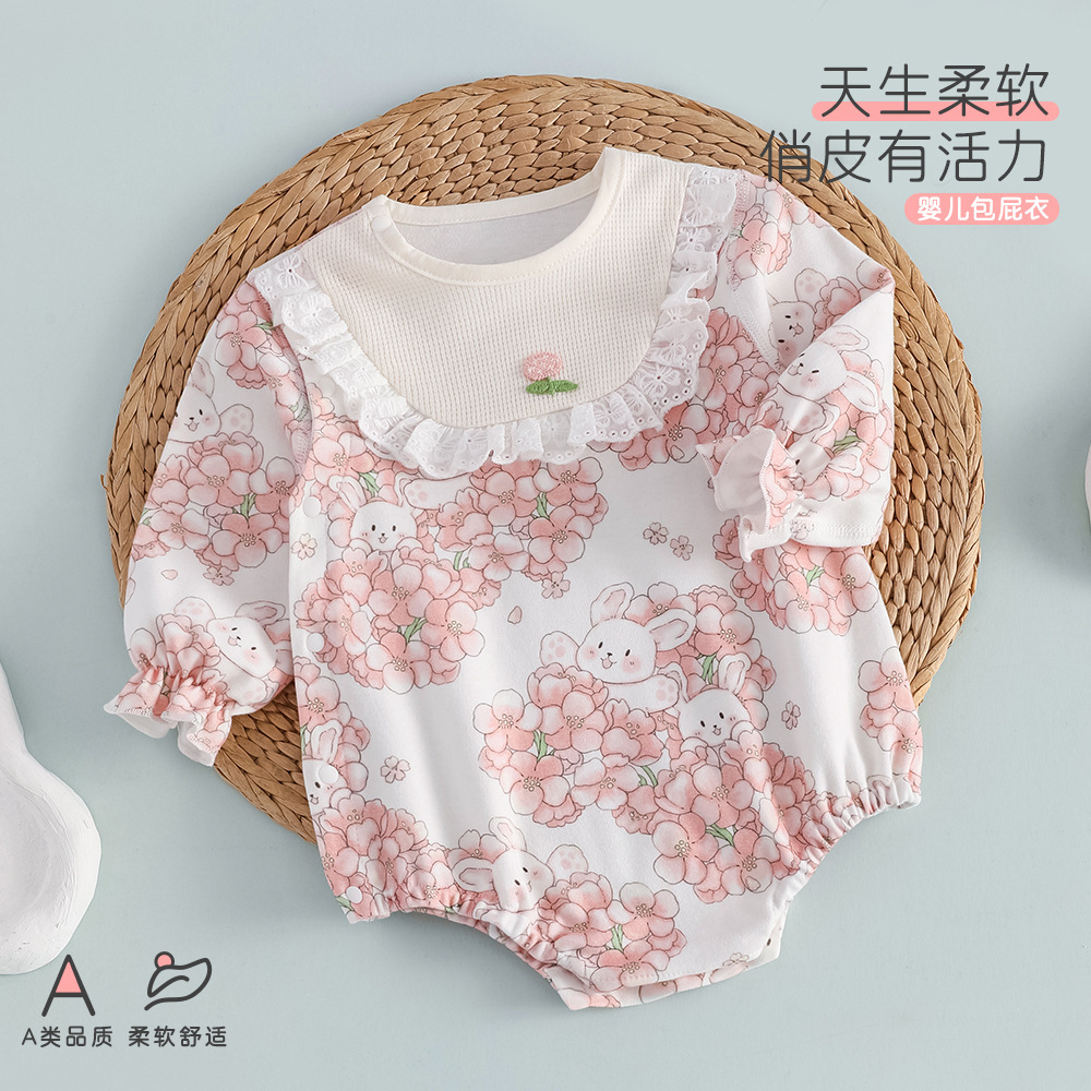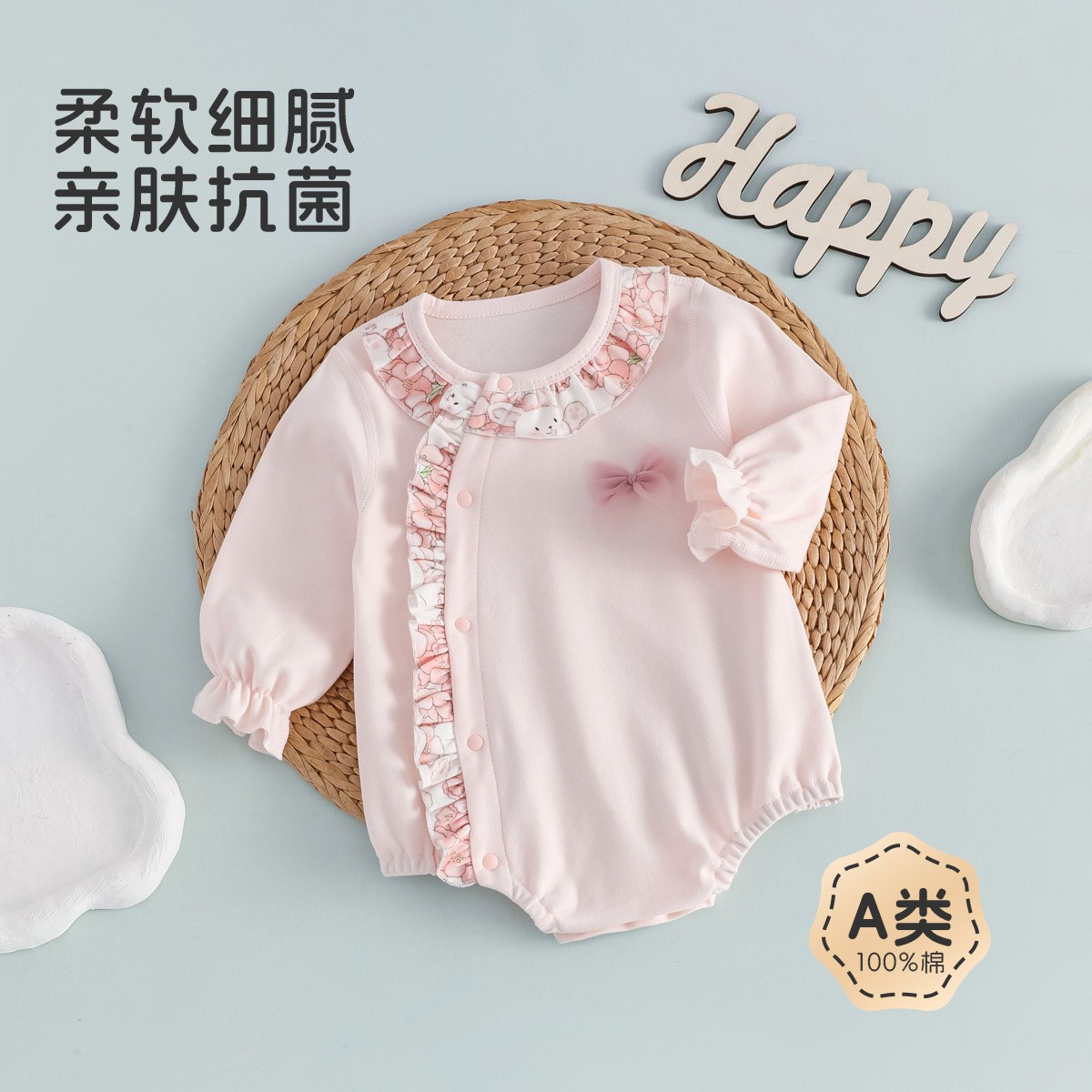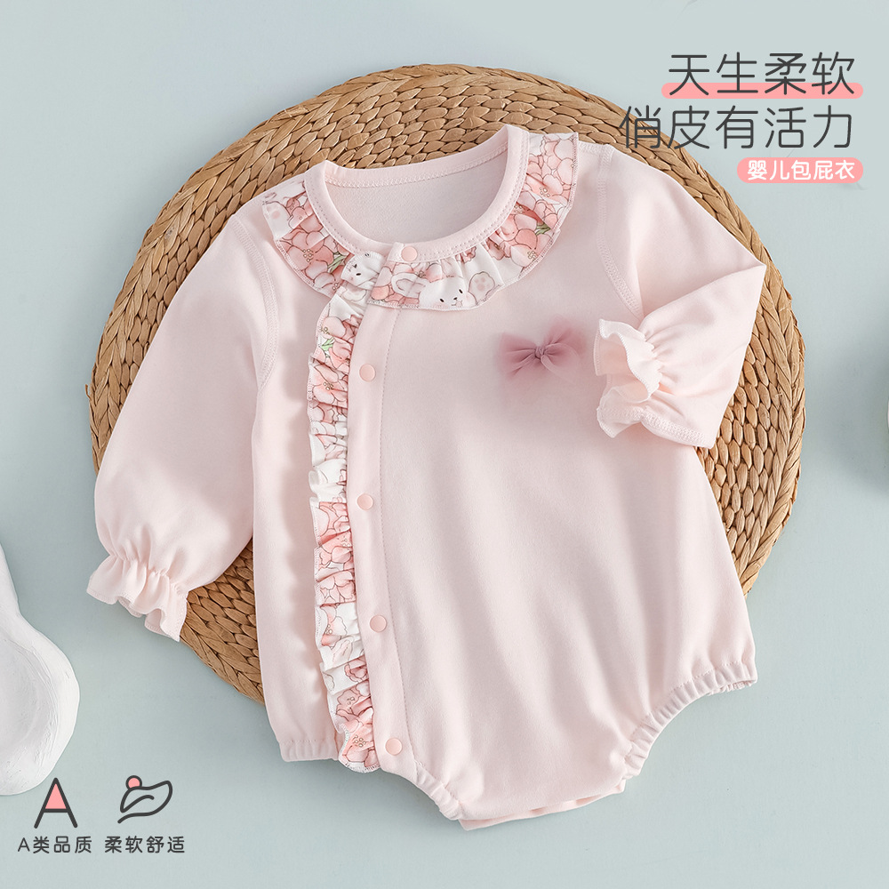 婴儿春装纯棉a类无骨新生儿包屁衣男女宝宝公主风三角哈衣爬服