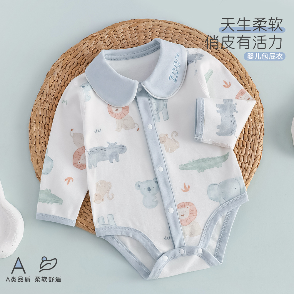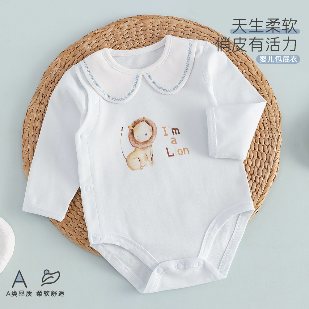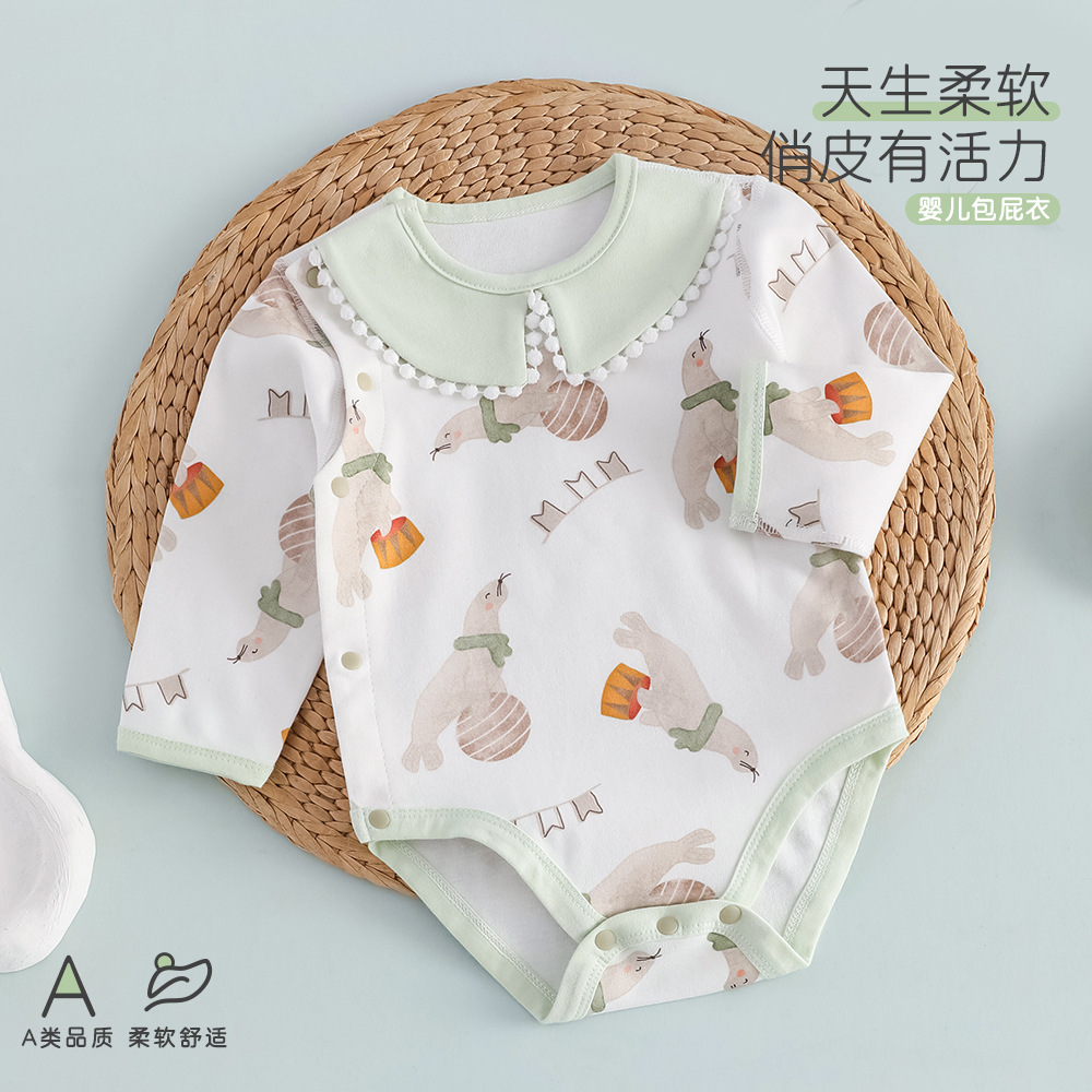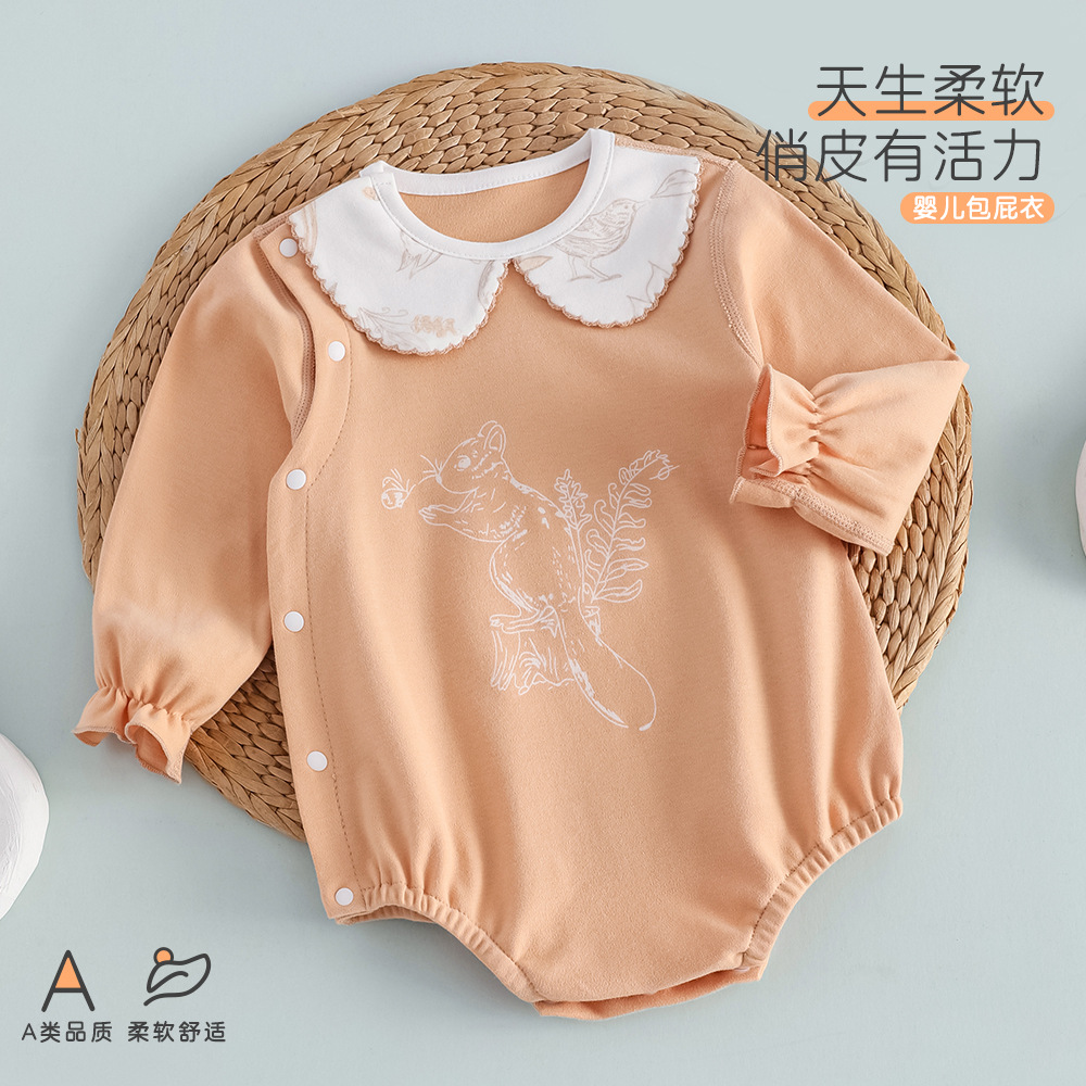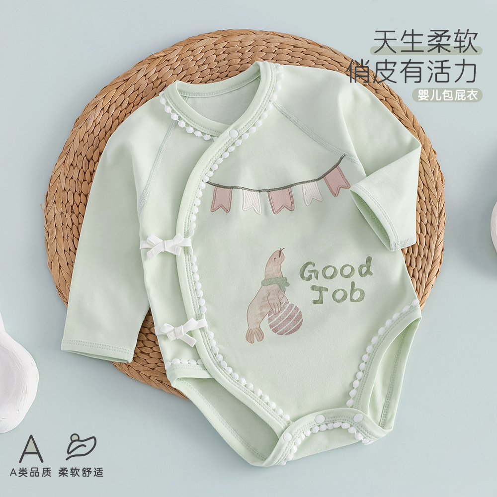 婴儿春装纯棉a类无骨新生儿包屁衣男女宝宝公主风三角哈衣爬服