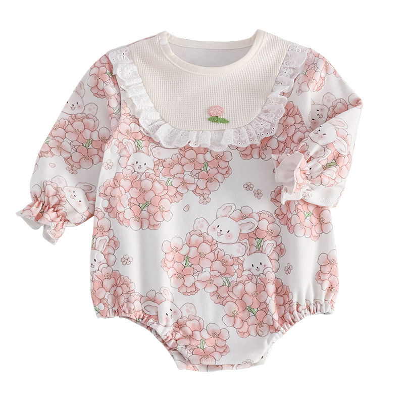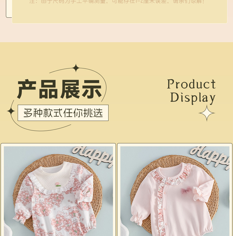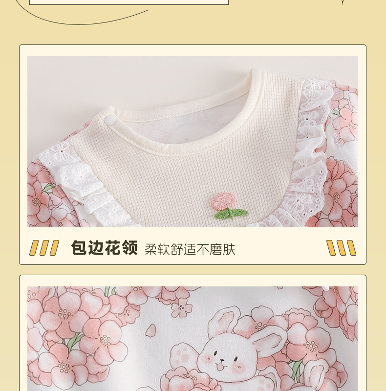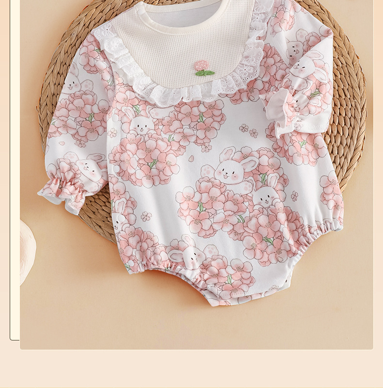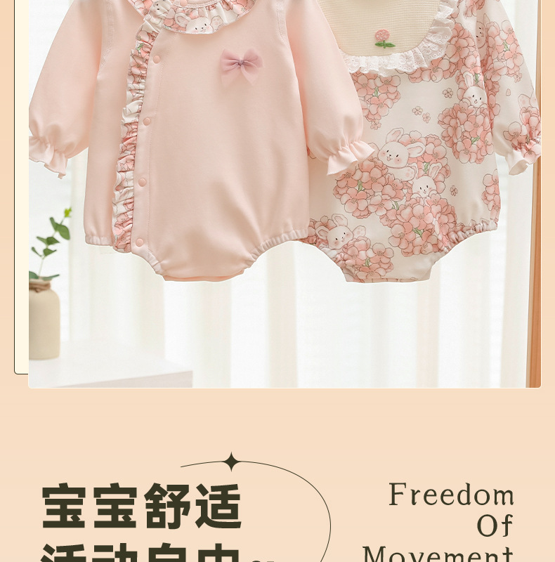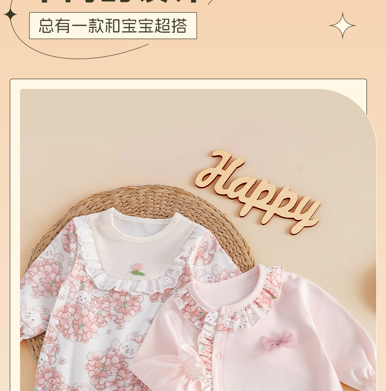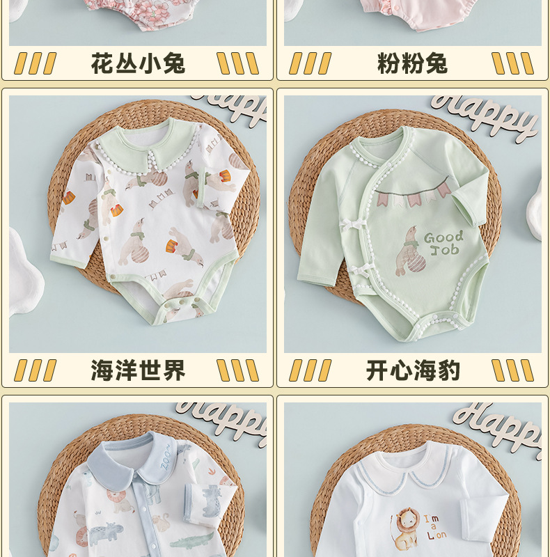 婴儿春装纯棉a类无骨新生儿包屁衣男女宝宝公主风三角哈衣爬服
