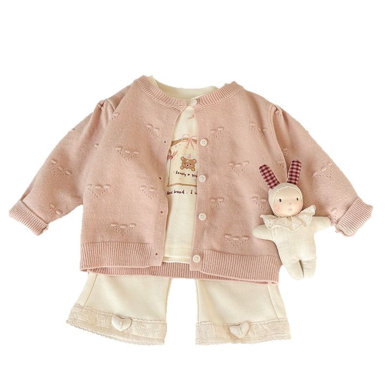 女童毛衣套装2025春季洋气宝宝上衣外套针织开衫2件套婴儿衣服a类