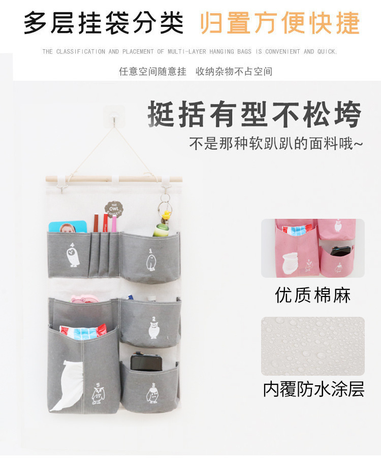 宿舍棉麻纸巾抽防水内衣收纳挂袋墙上悬挂式多层收纳防尘储物袋