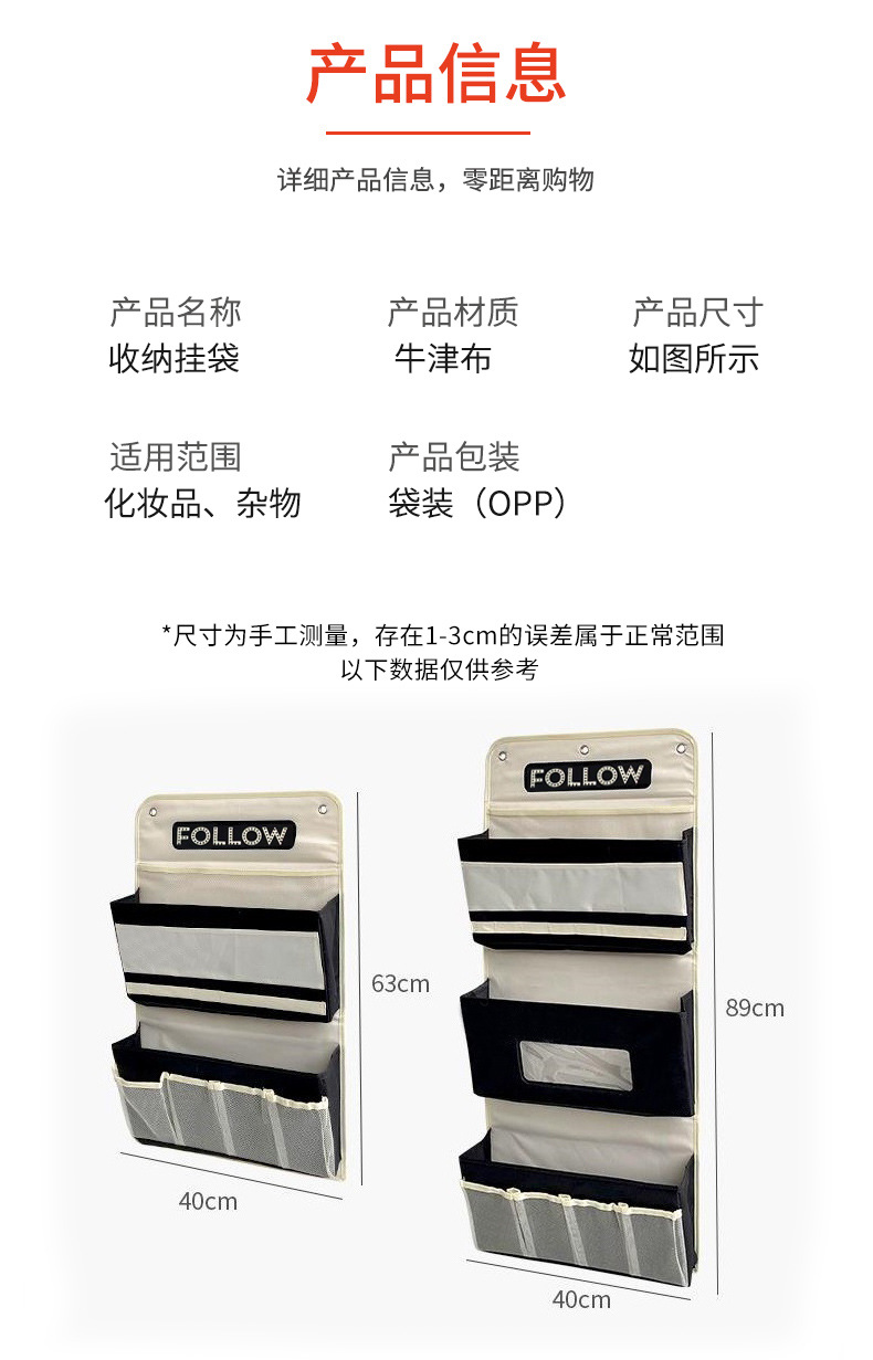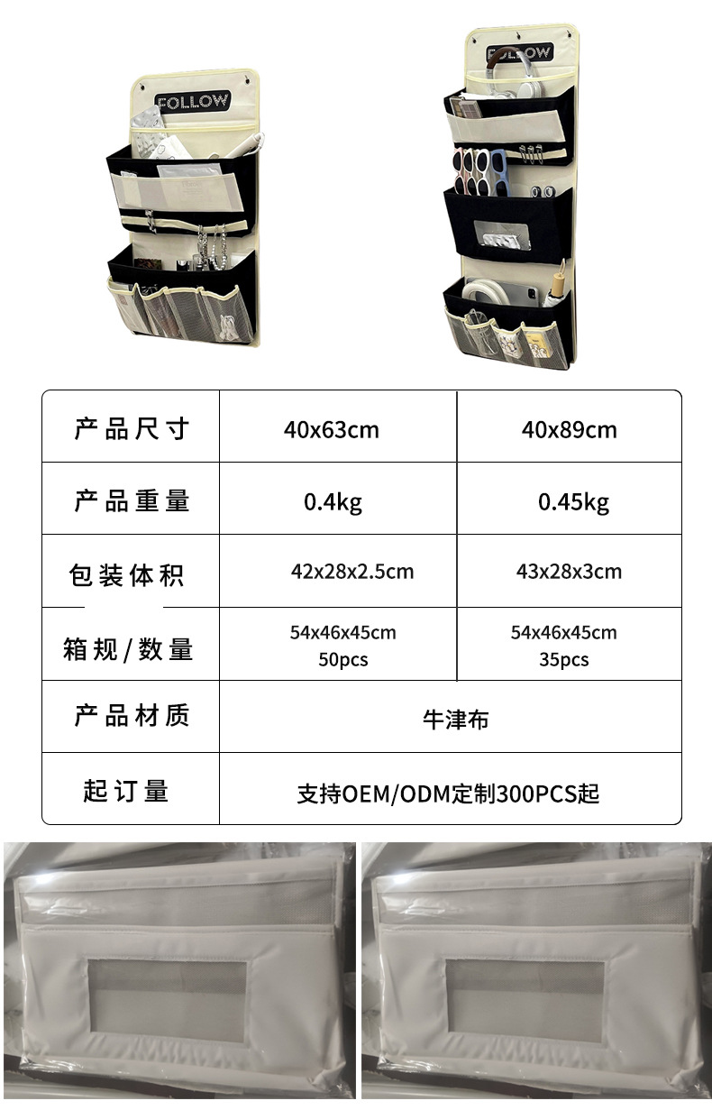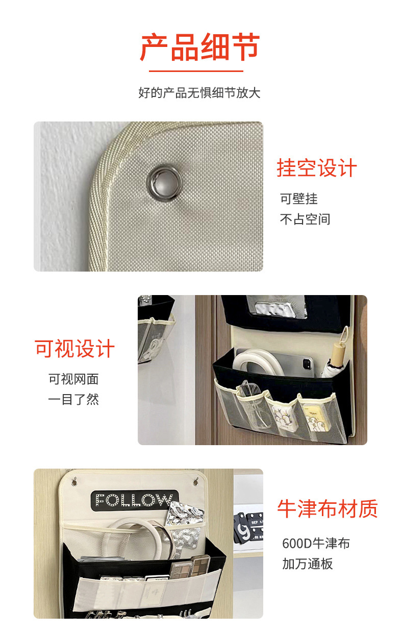 跨境供货宿舍收纳神器门后挂兜壁挂式床头收纳袋 衣柜收纳储物袋