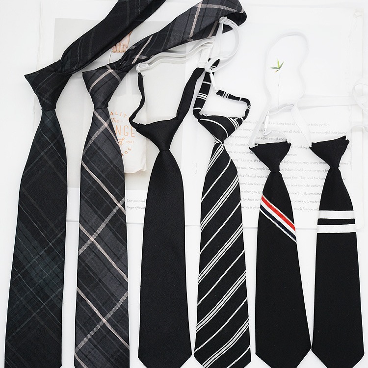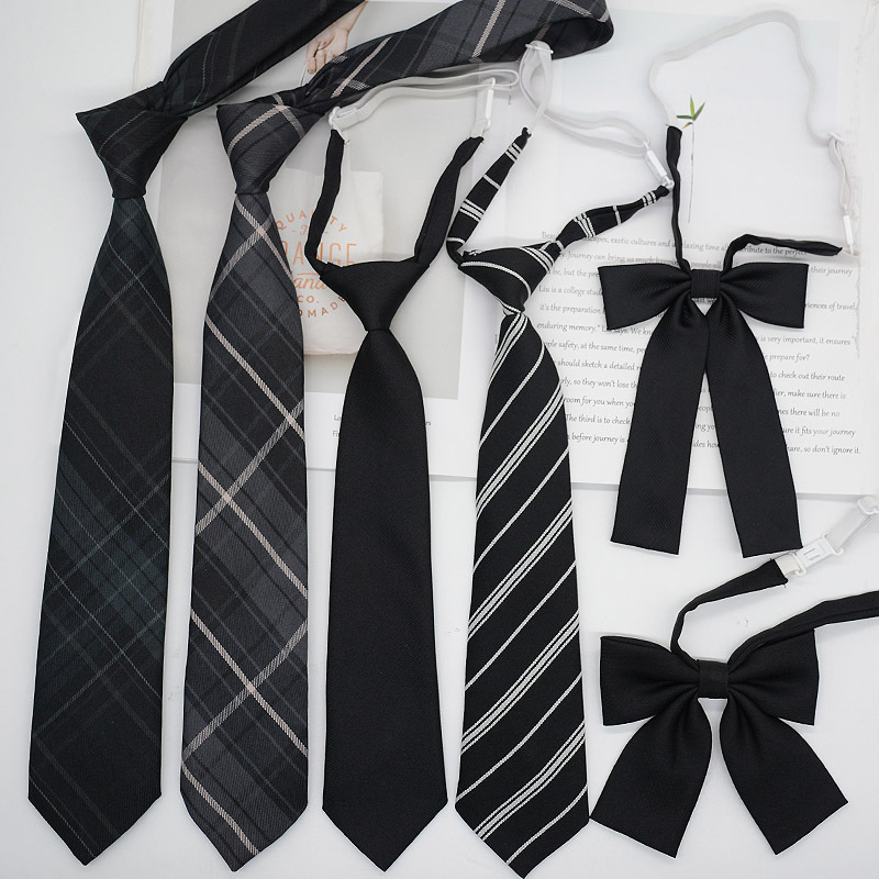 JK领带黑色灰色格子条纹女生蝴蝶结男生手打款免打结短款情侣配饰