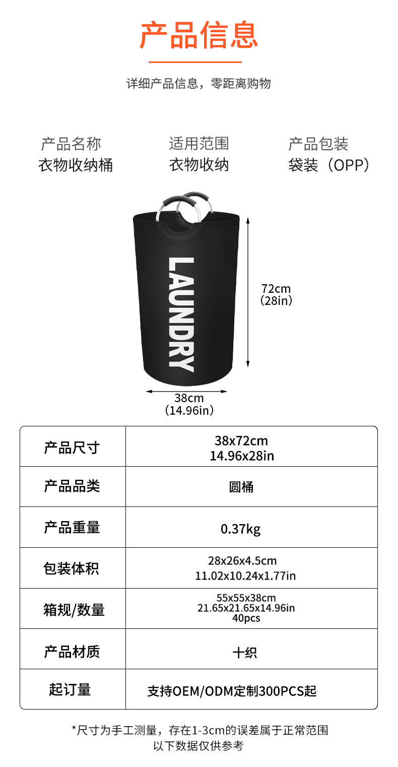 跨境新款防水脏衣篮家用脏衣服收纳筐大容量衣服玩具折叠收纳袋