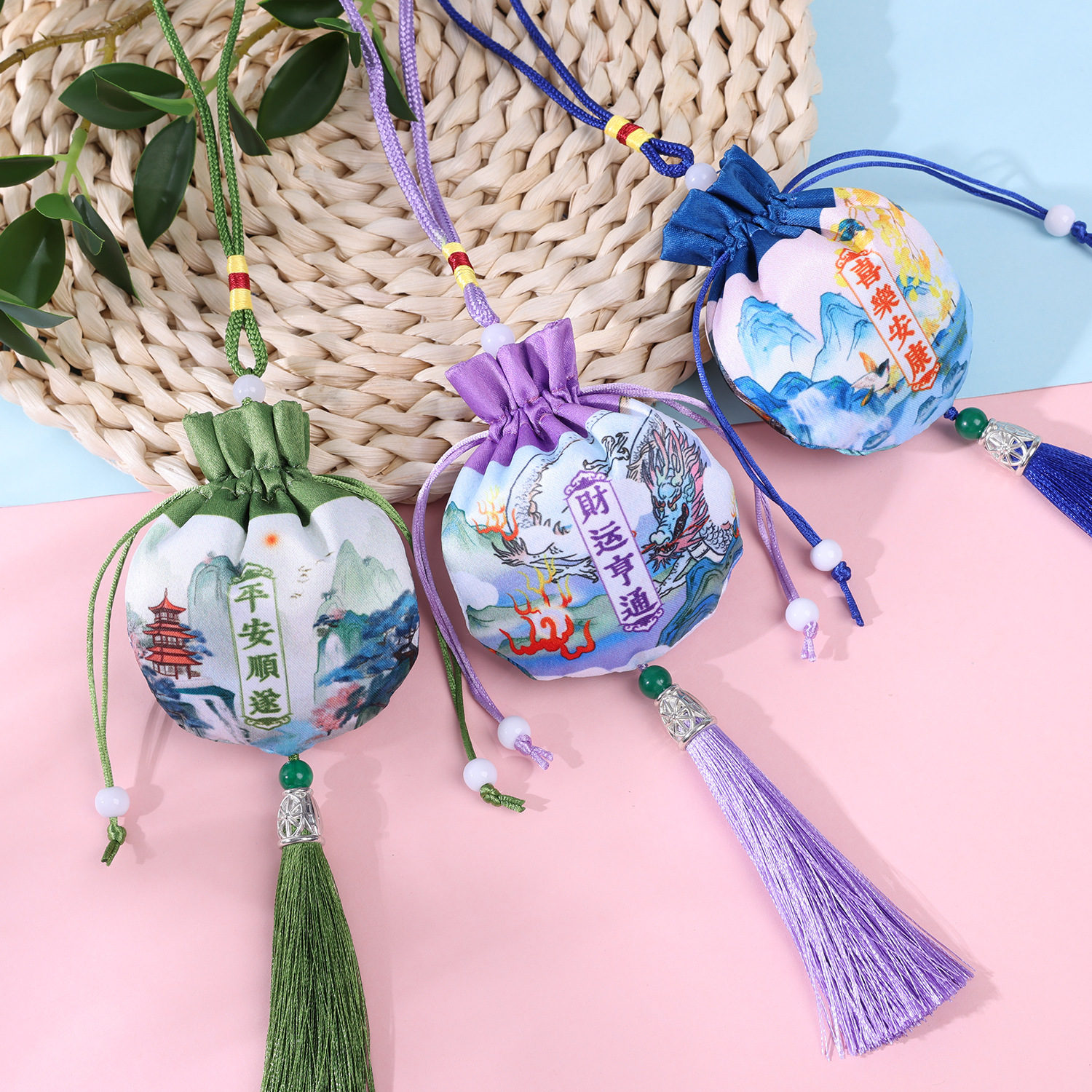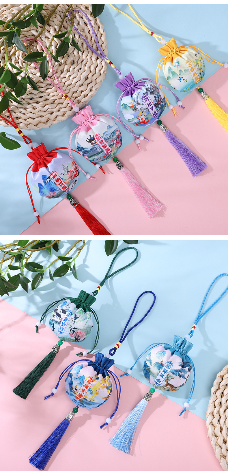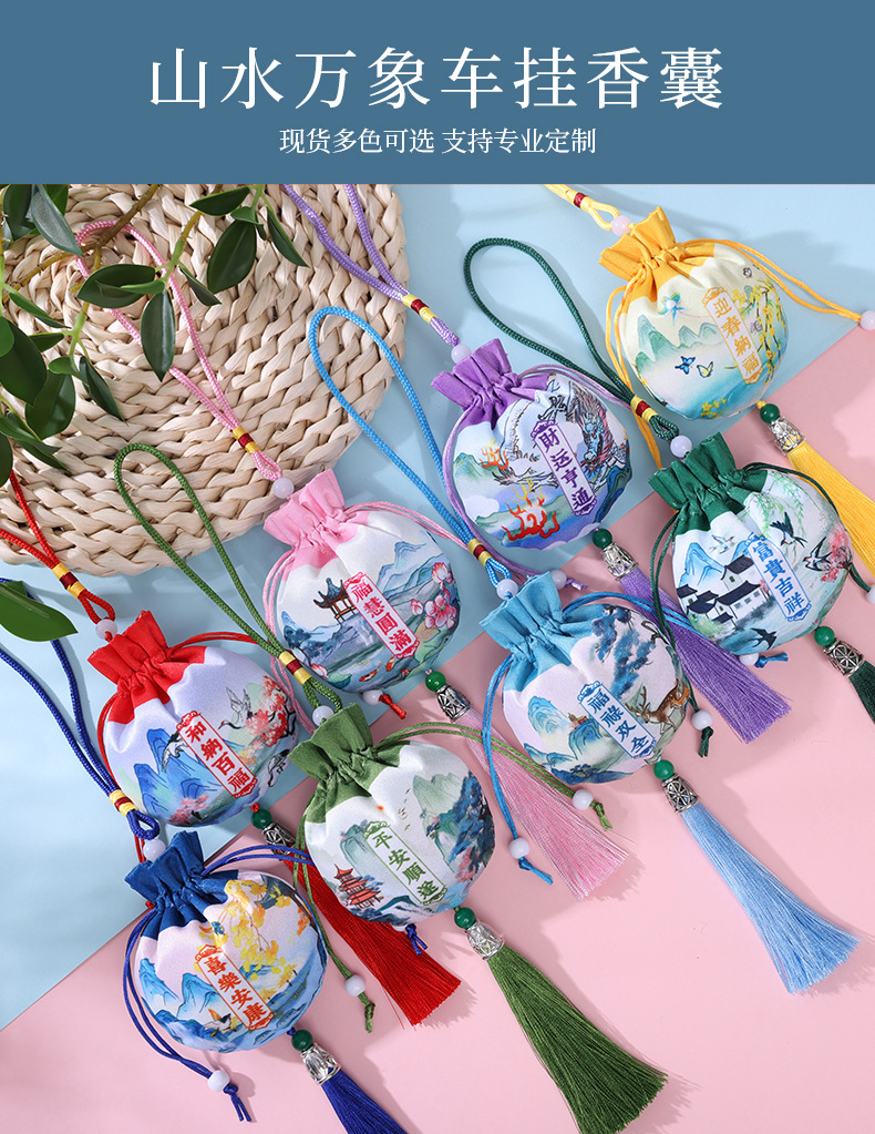 新款香包香囊车载饰品挂件古风流苏艾草香包荷包刺绣香袋艾叶空袋