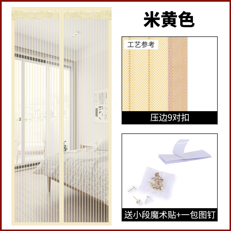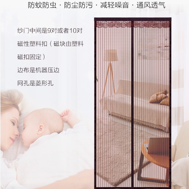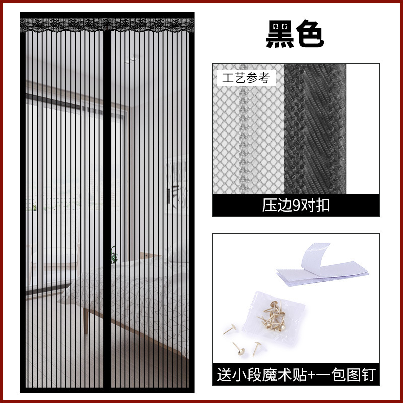 批发夏季磁性软纱门帘压边条纹款防蚊虫纱门纱窗帘免打孔九对扣