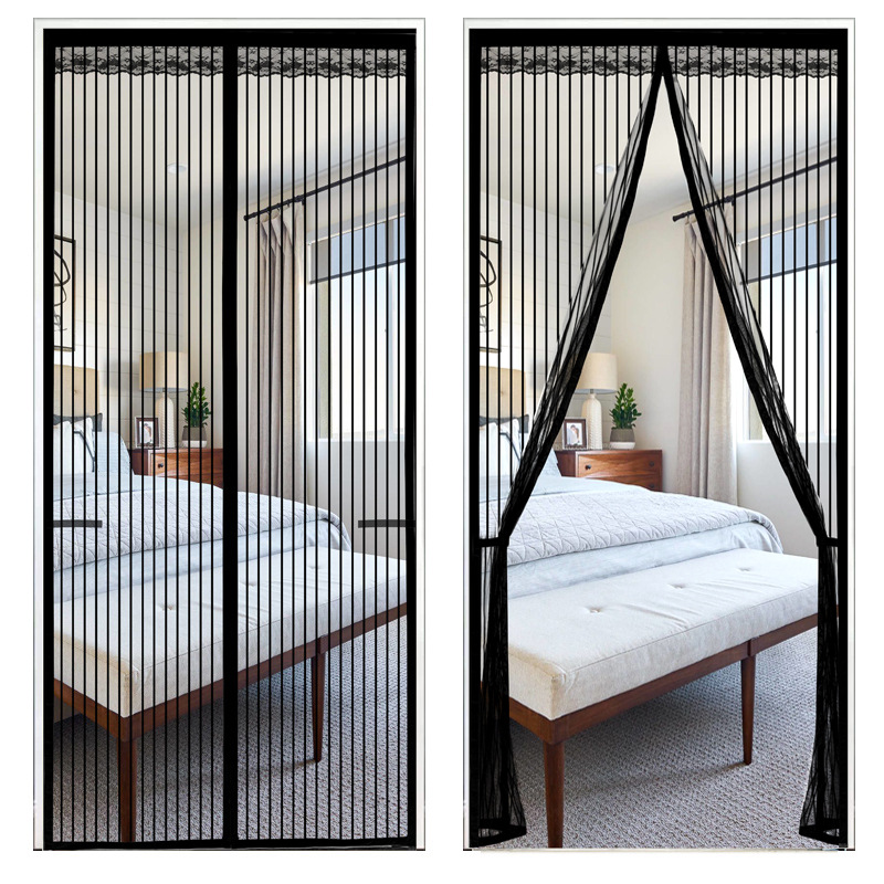 防蚊门帘跨境专供批发魔术贴门帘批发静音条纹加密防蚊磁性软纱门