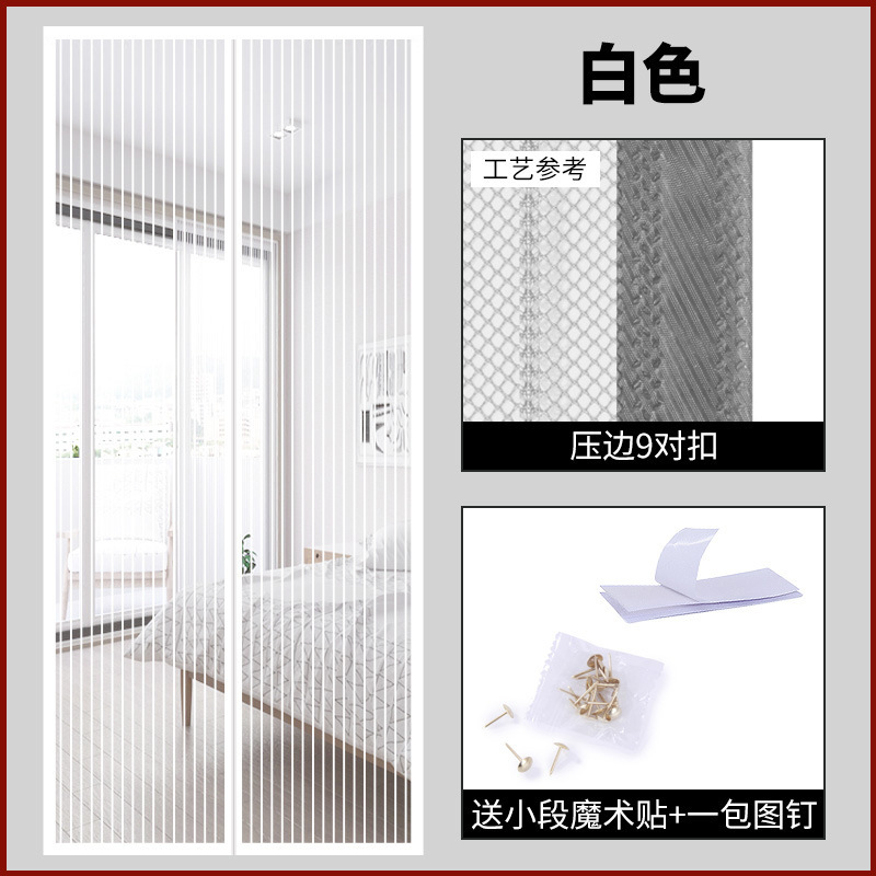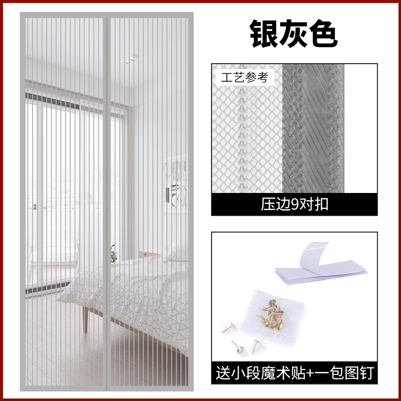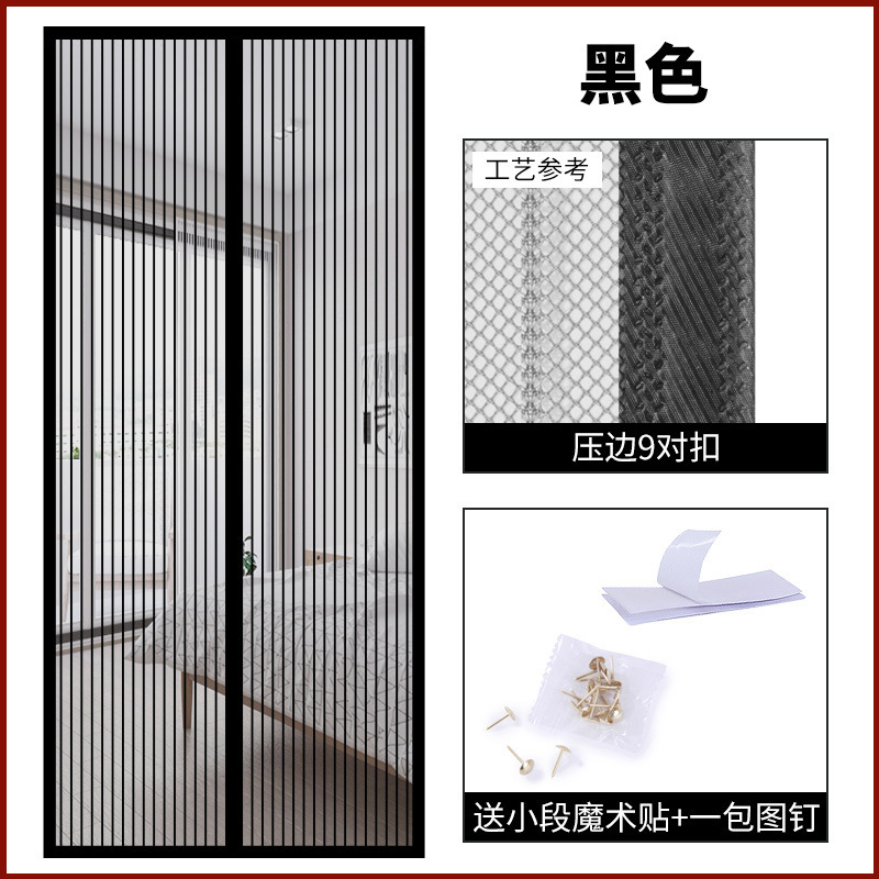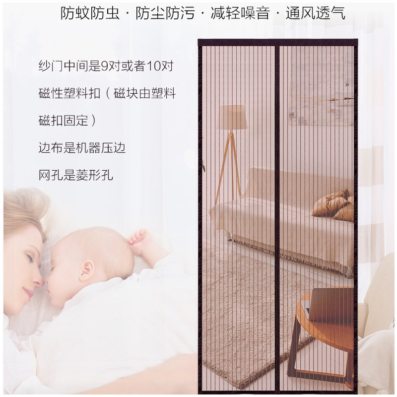 定制磁性软纱门帘压边条纹静音门帘免打孔九对扣夏季防蚊自吸门帘