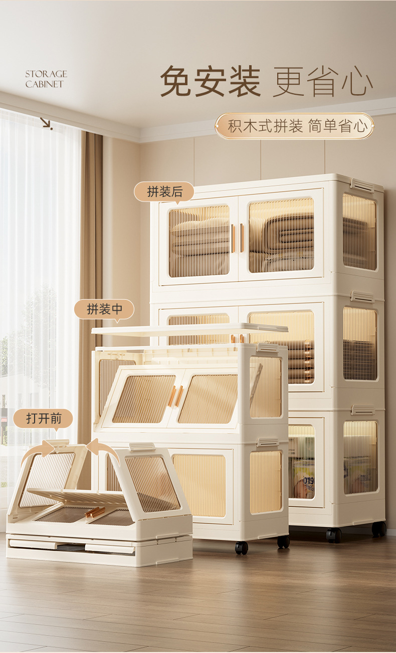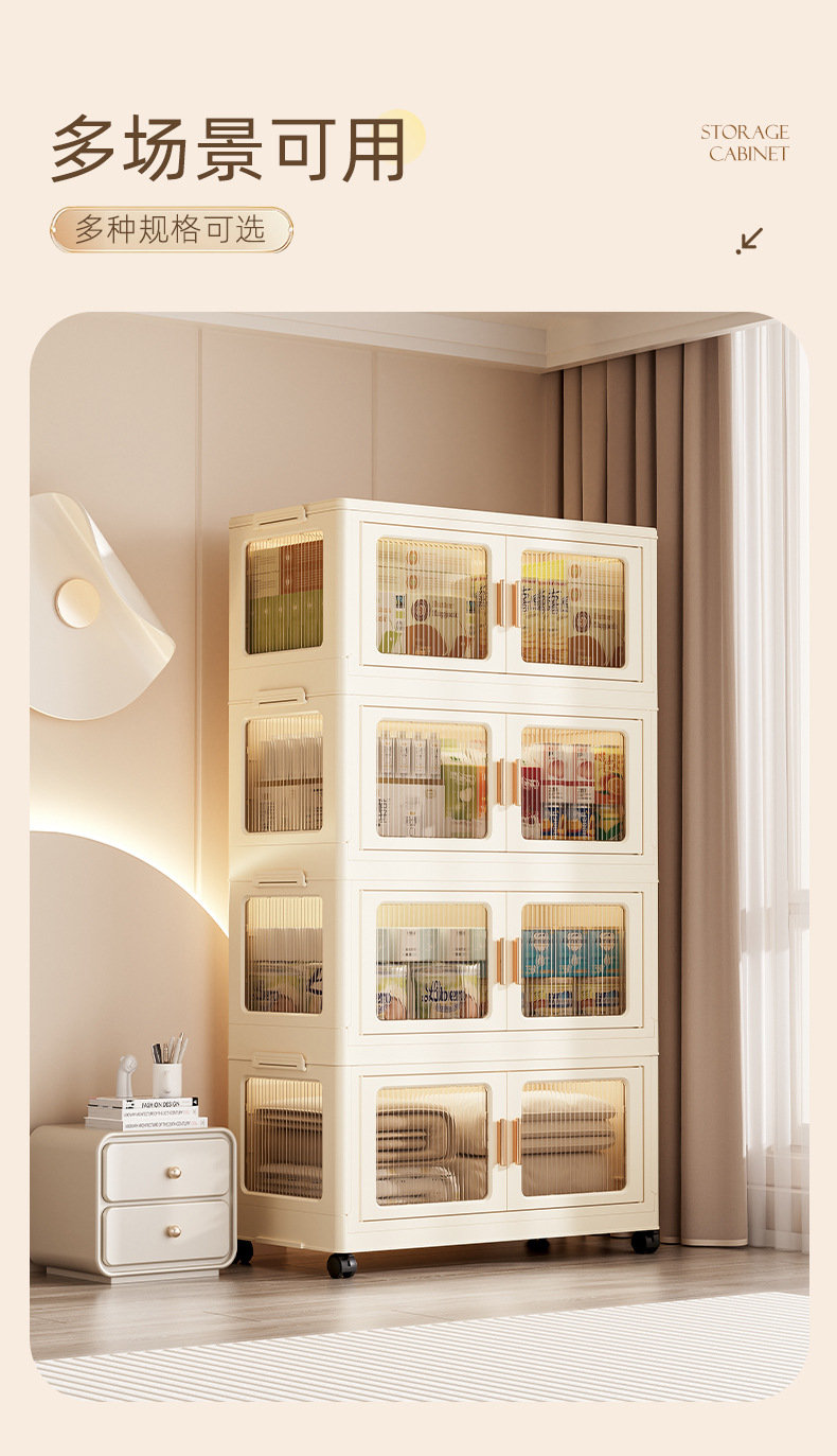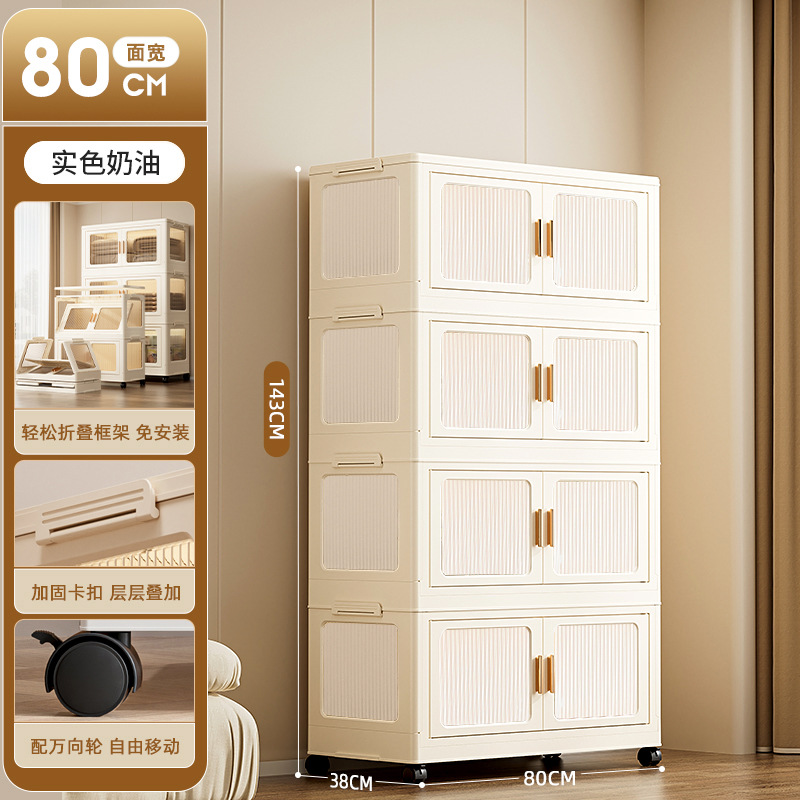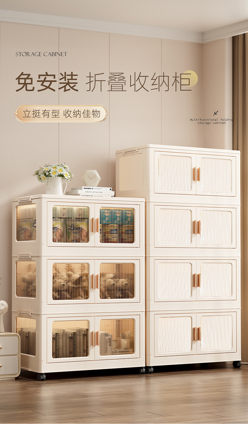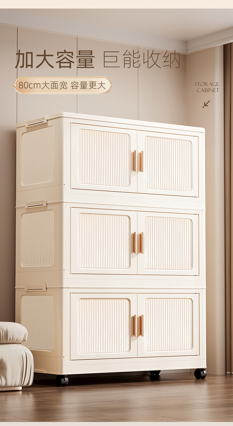 折叠收纳柜家用卧室被子衣服塑料整理箱多层可移动儿童玩具储物柜