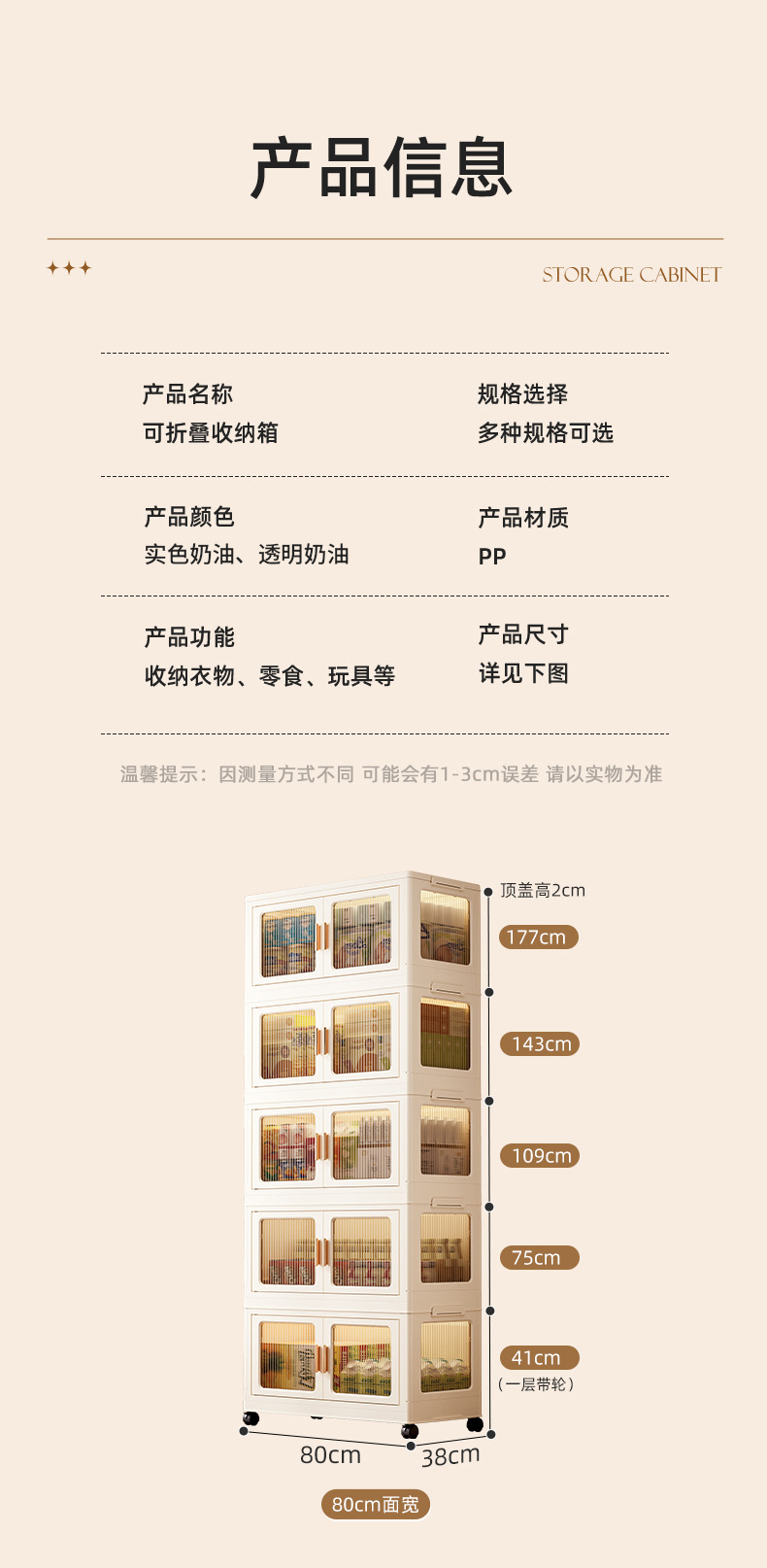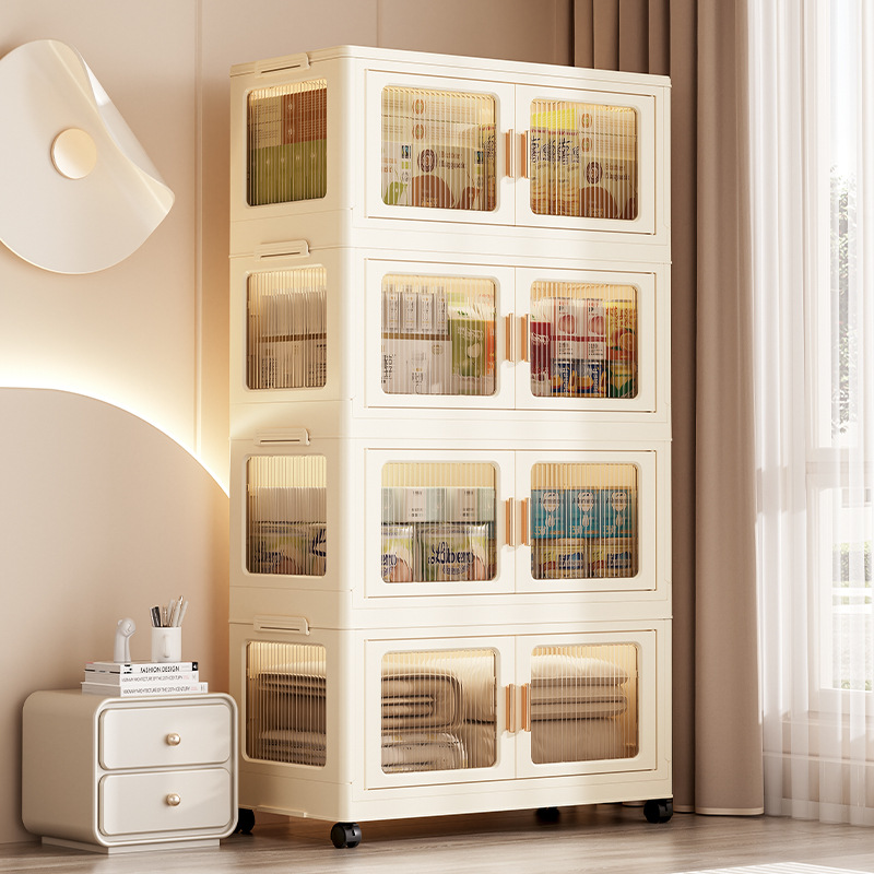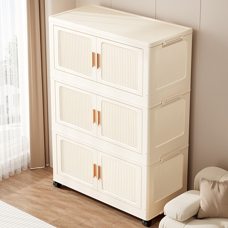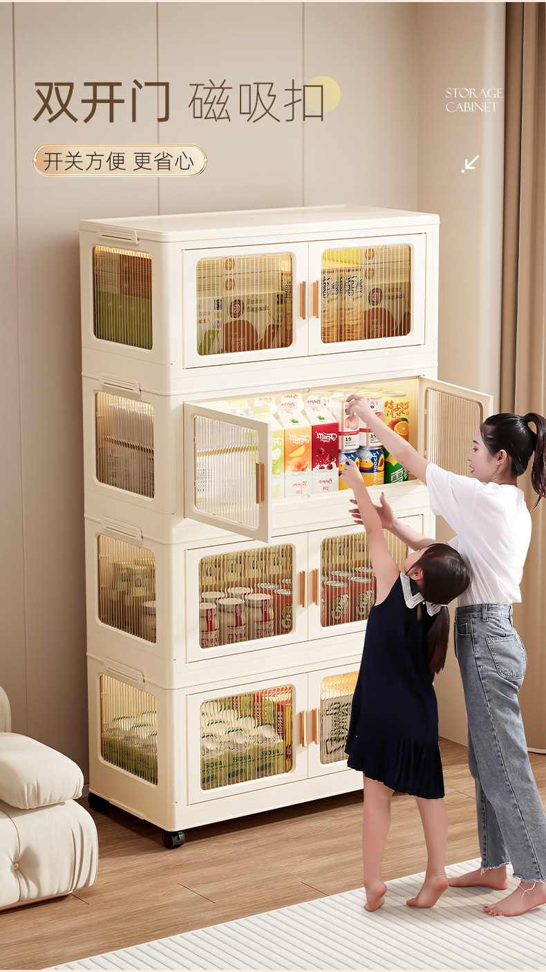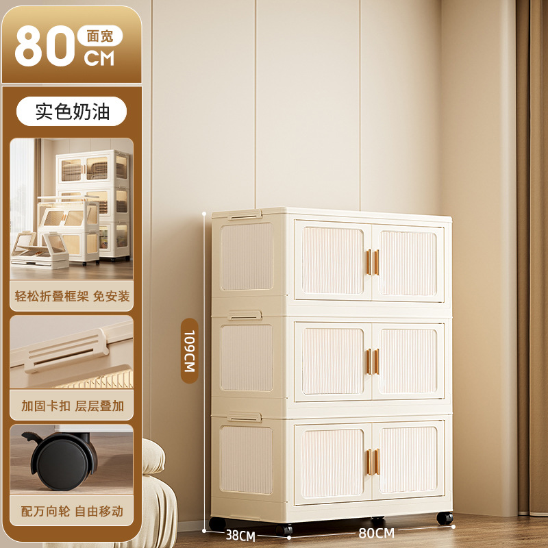 折叠收纳柜家用卧室被子衣服塑料整理箱多层可移动儿童玩具储物柜