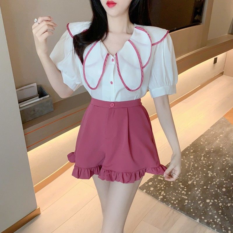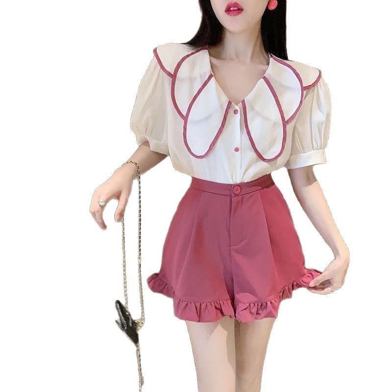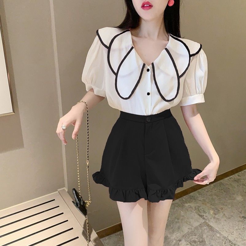 荷叶边短裤女木耳边2025夏季休闲宽松西装阔腿裤韩版学生皱褶裤子