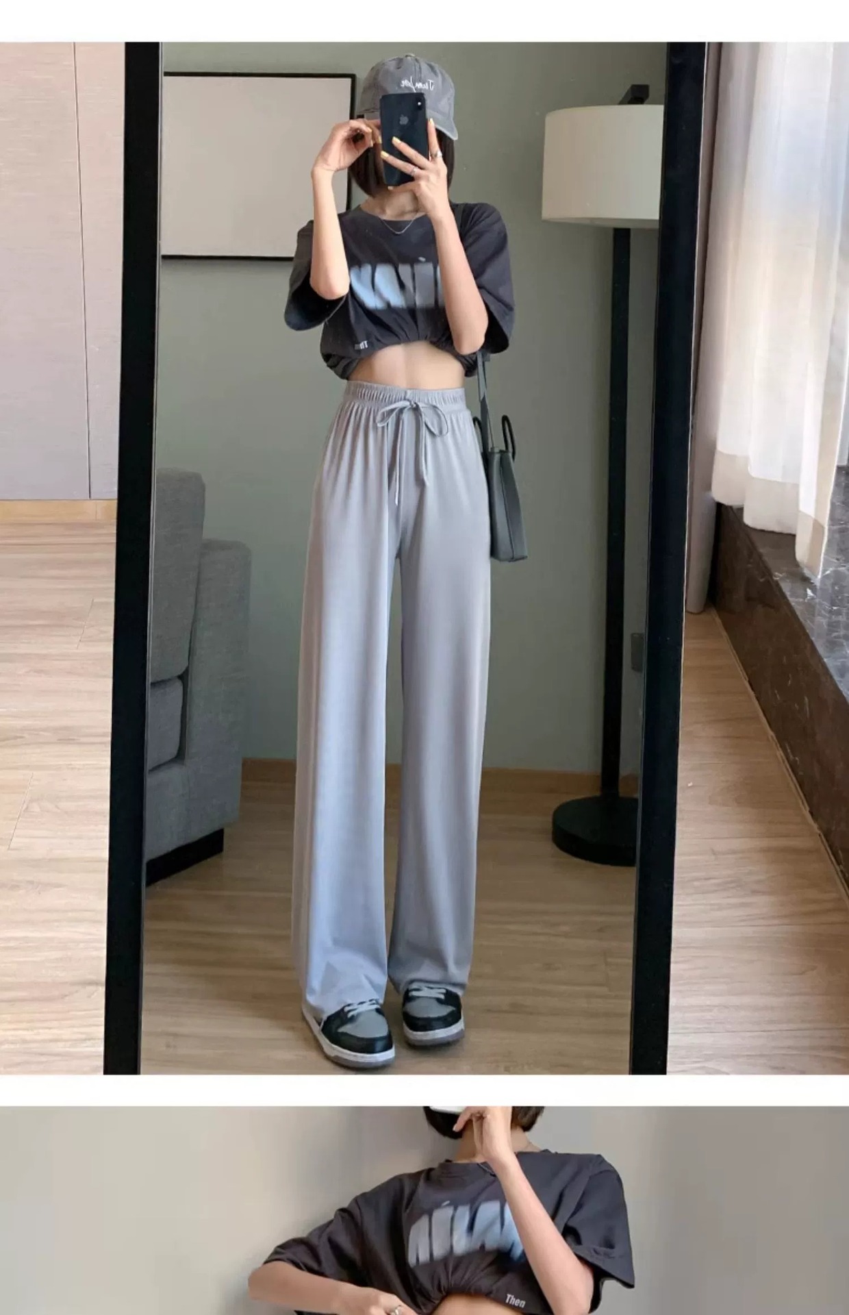 冰丝阔腿裤女2025新款夏季薄款高腰垂感凉凉拖地九分裤休闲直筒裤