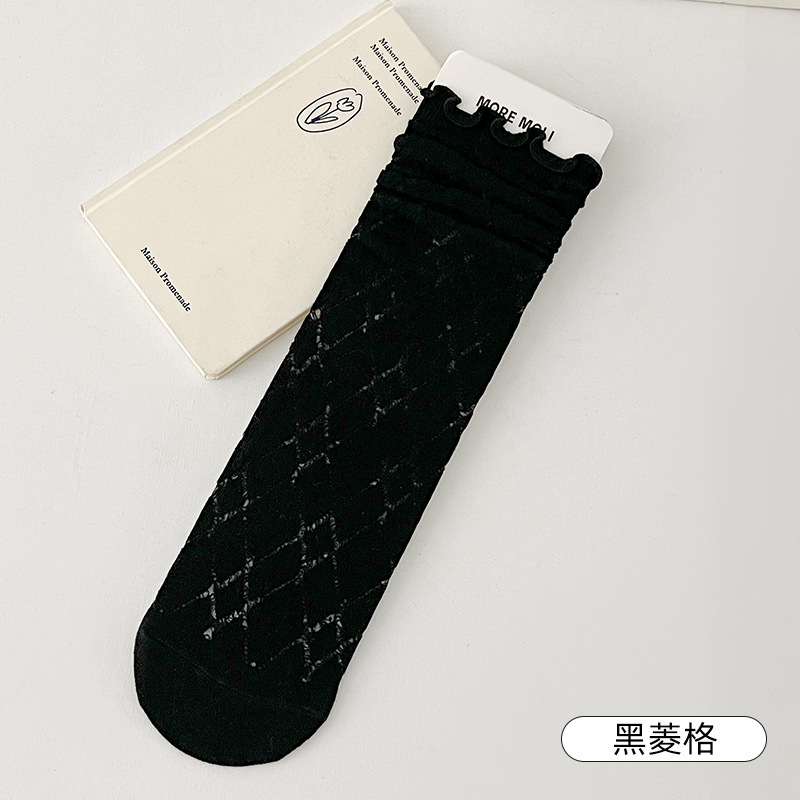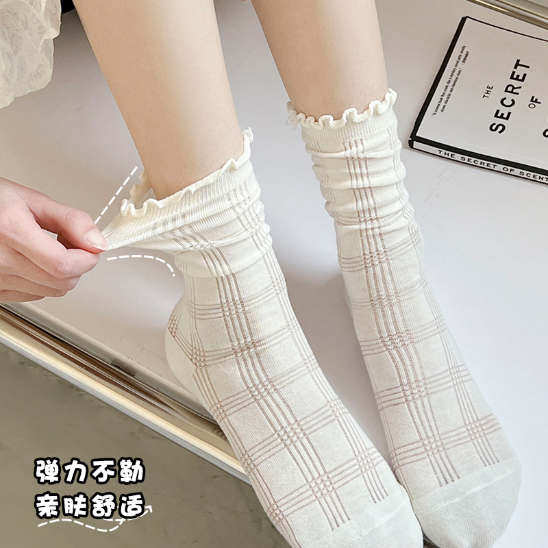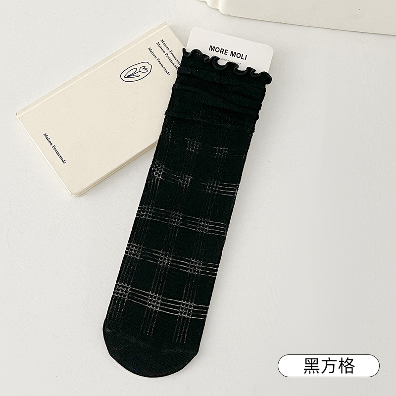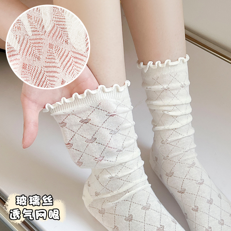 木耳边jk堆堆袜纯色简约ins潮吸汗中筒袜玻璃丝透气诸暨袜子批发