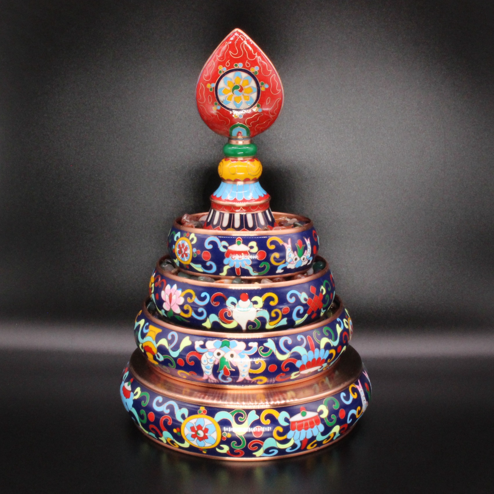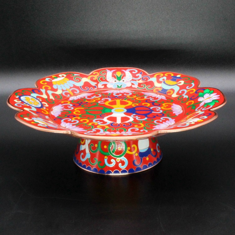 景泰蓝曼扎供佛具法器素铜掐丝低温珐琅曼达盘曼茶罗带托盘