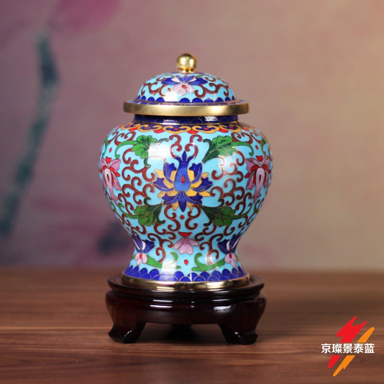北京景泰蓝工艺礼品摆件传统铜胎掐丝珐琅磨光5寸缠枝莲纹将军罐