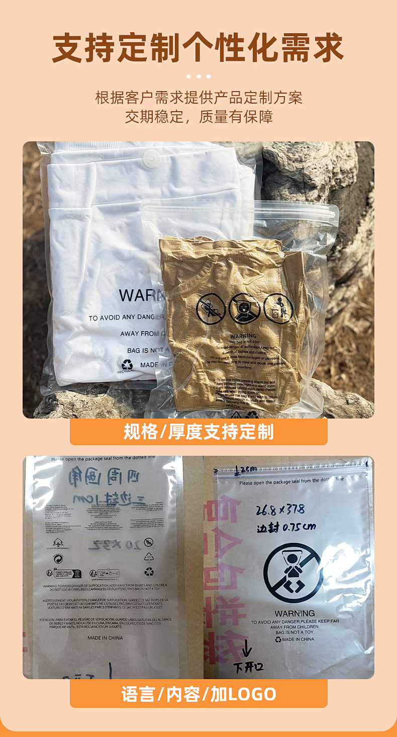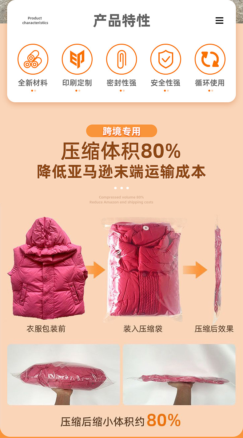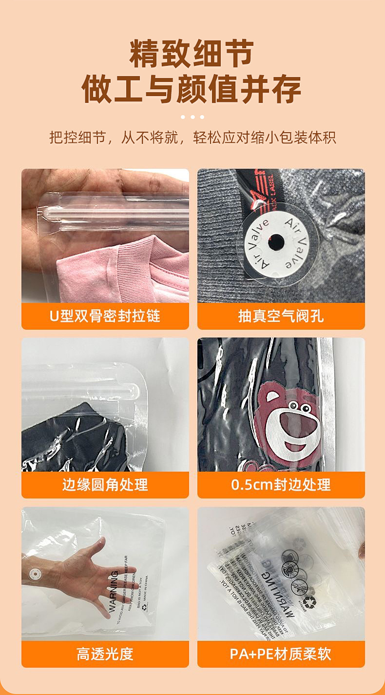 亚马逊跨境警示语真空袋透明服装包装袋衣物毛衣压缩拉链自封袋