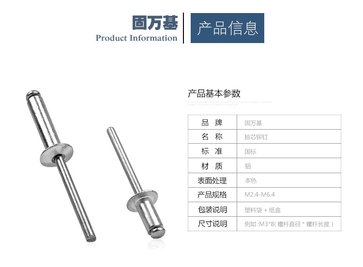 抽芯铆钉铝制拉铆钉铝铆钉半圆头抽心柳钉开口形K型M3.2/M4/M5/M6