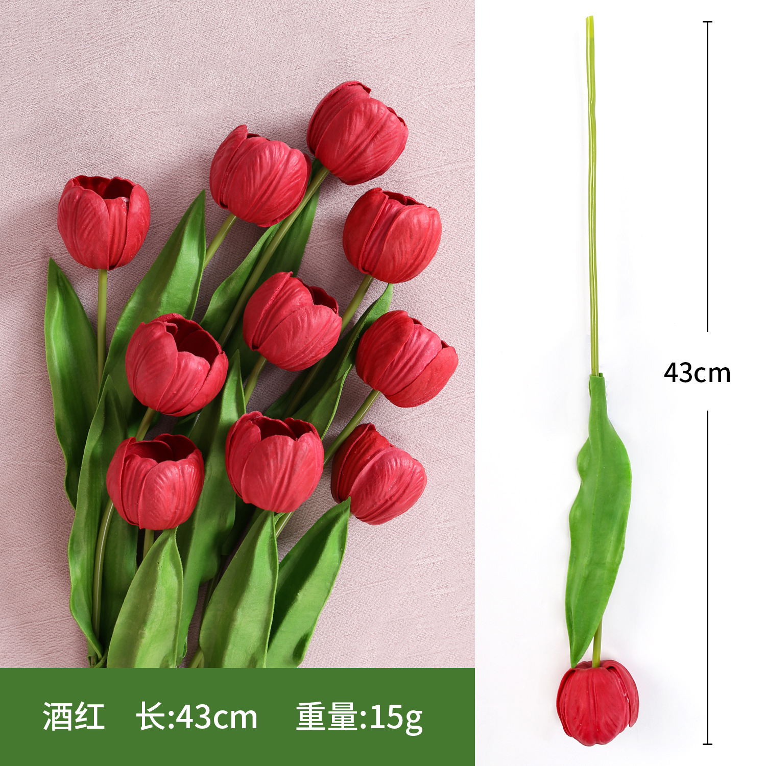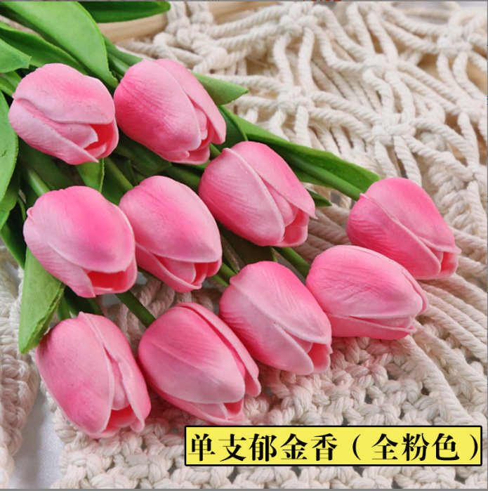仿真PU迷你郁金香仿真假花卉跨境婚庆花束家居手感保湿郁金香批发