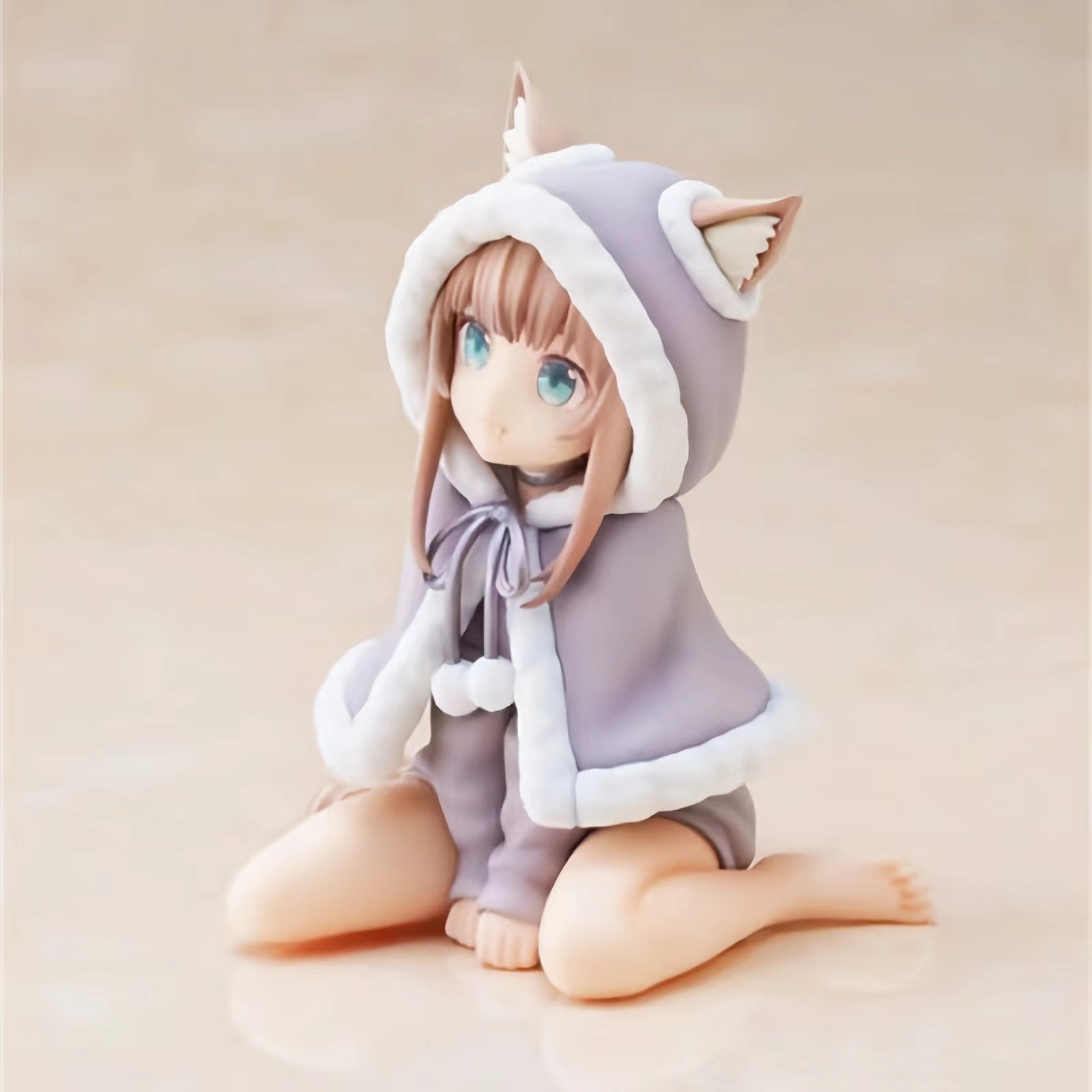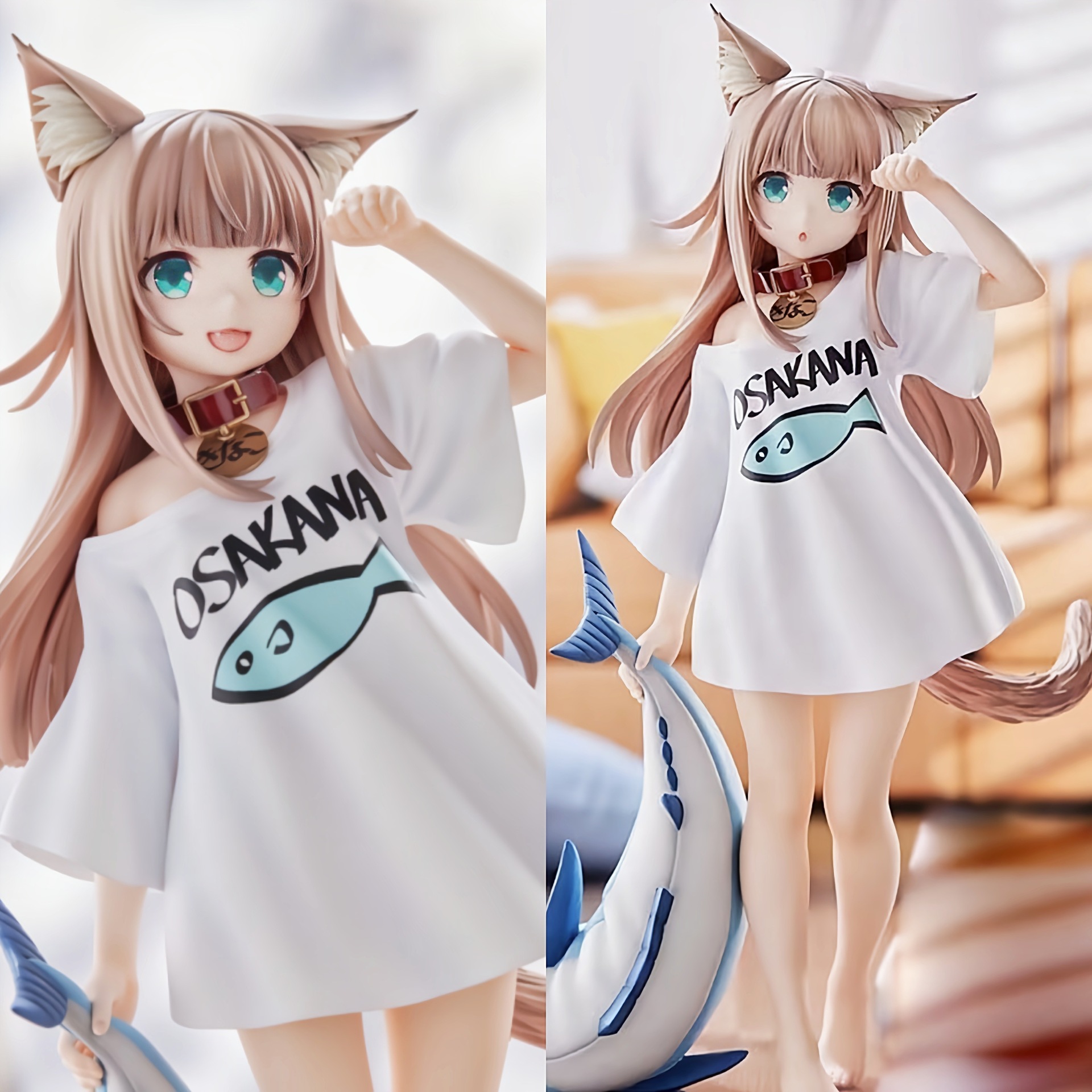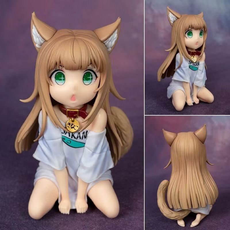 批发代发 黄豆粉 坐着吃鱼 猫娘 坐姿 可换脸 美少女手办摆件模型