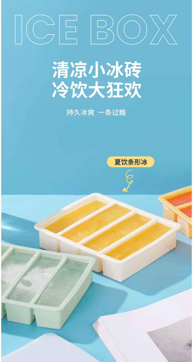 现货亚马逊硅胶四格长条冰格威士忌模具速冻易脱模硅胶4格冰格