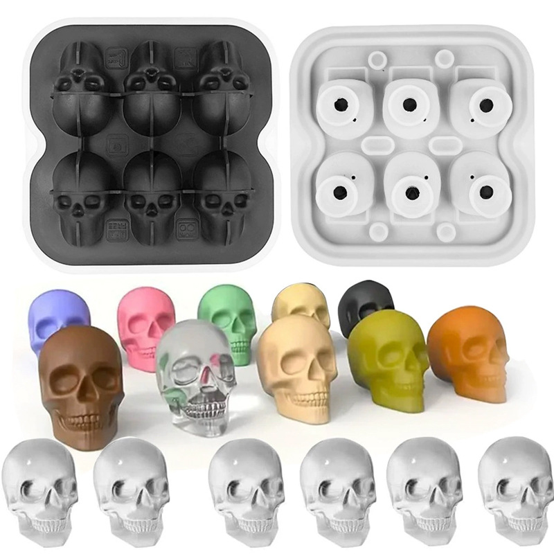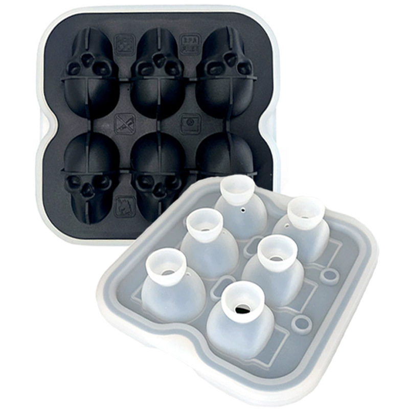 亚马逊食品级4个6个骷髅头冰格硅胶冰格冰球块模具带盖硅胶冰格