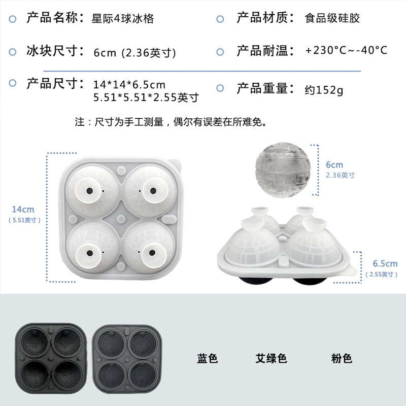 出口亚马逊硅胶冰格4球6球免漏斗威士忌冻冰块家用制冰盒网红神器