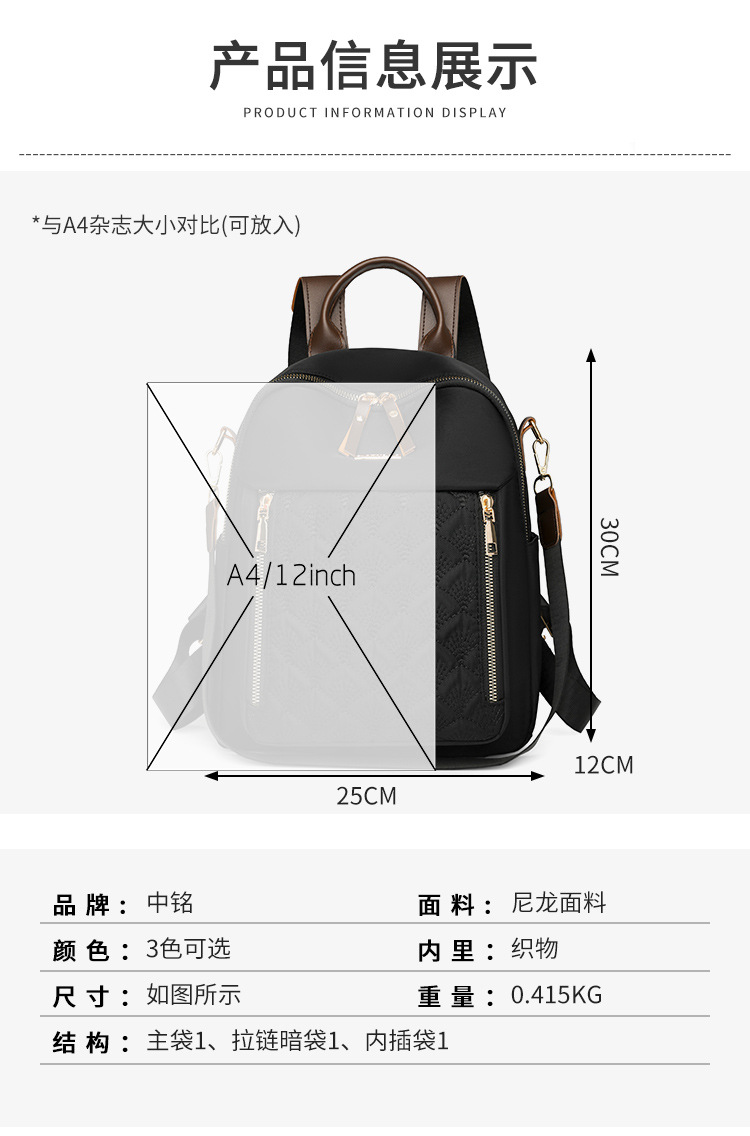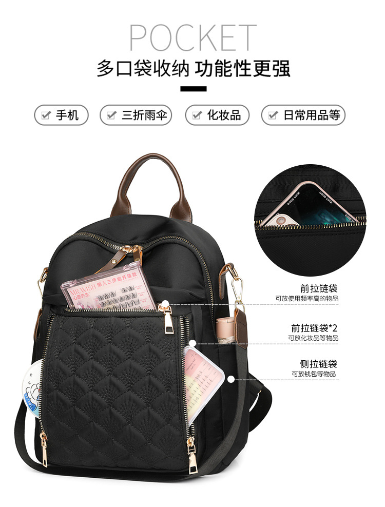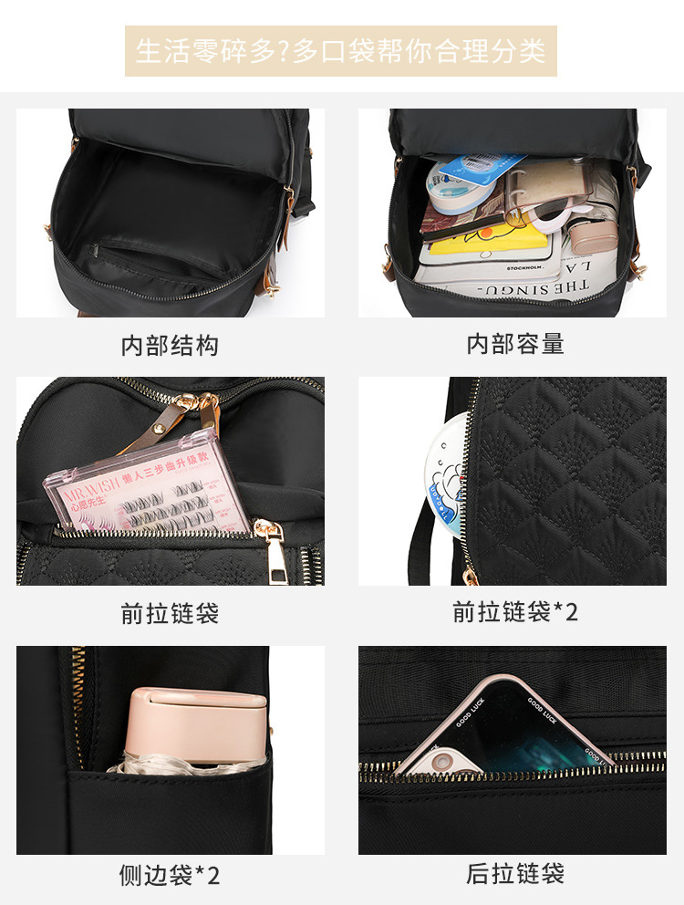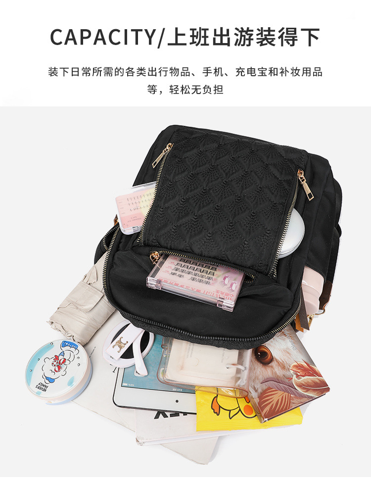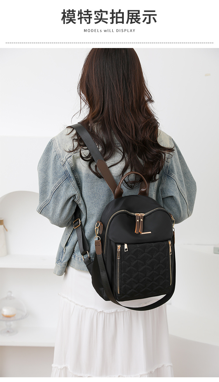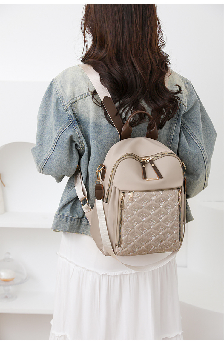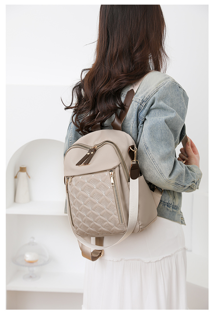 菱格绣线双肩包女2025新款女士背包防泼水旅行背包