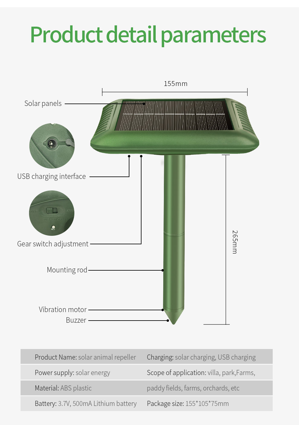 跨境热销地插驱蛇器 户外usb充电款超声波驱鼠器太阳能动物驱赶器
