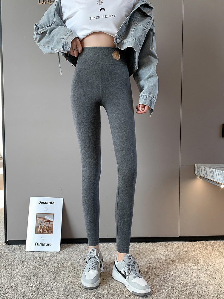 纯棉打底裤女外穿春秋季薄款高腰大码新款紧身弹力九分裤黑灰长裤