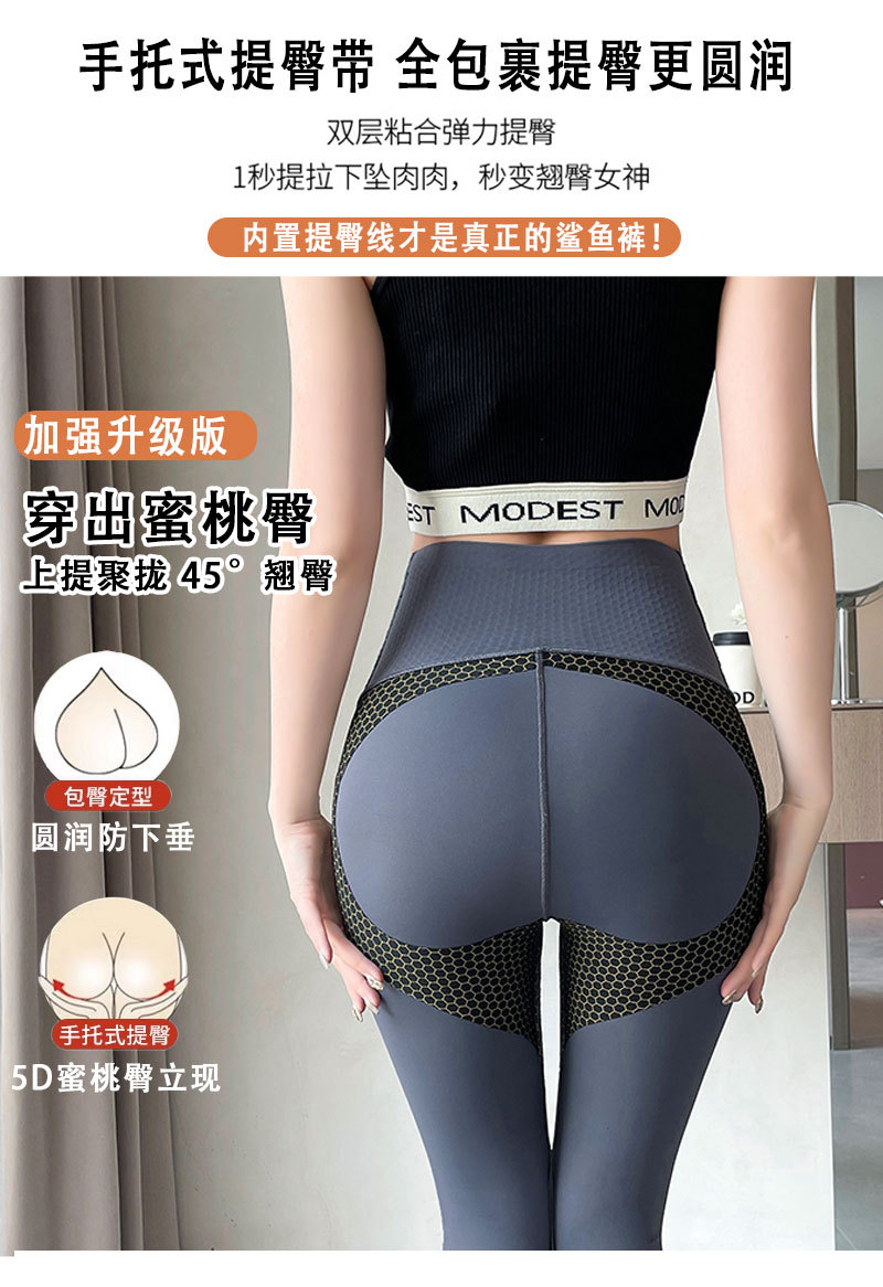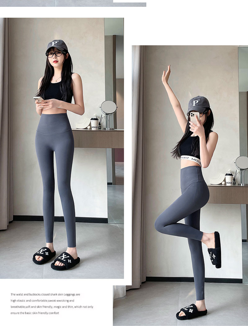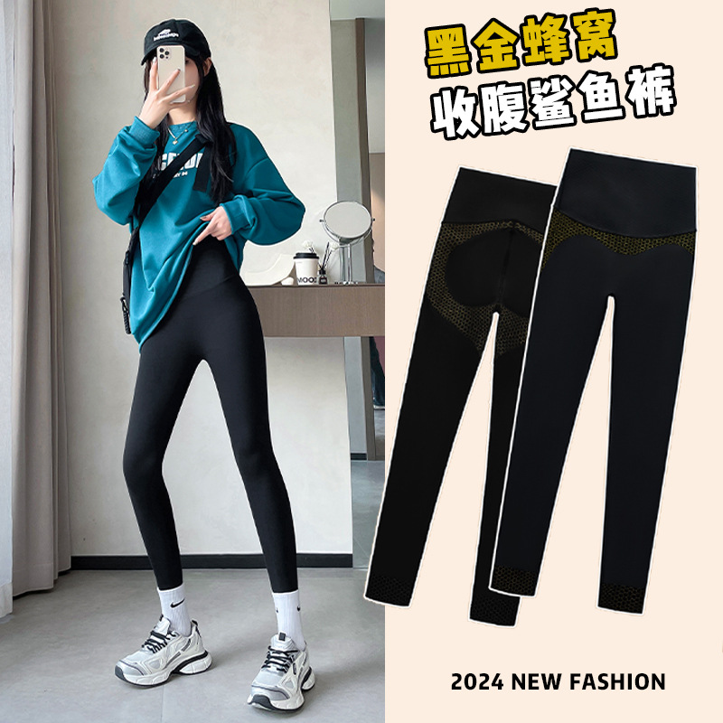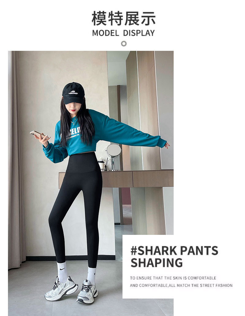 黑金鲨鱼裤女外穿高腰收腹提臀打底裤紧身弹力显瘦瑜伽芭比裤