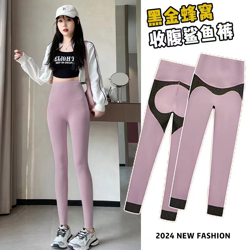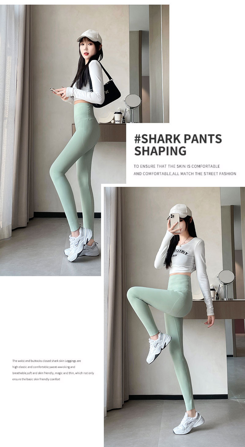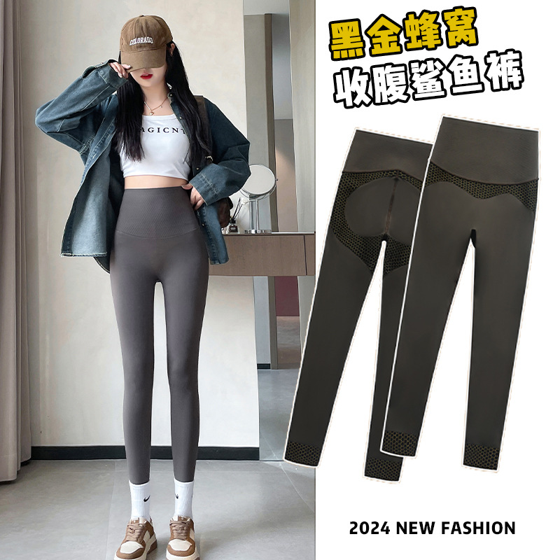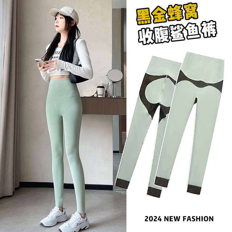 黑金鲨鱼裤女外穿高腰收腹提臀打底裤紧身弹力显瘦瑜伽芭比裤