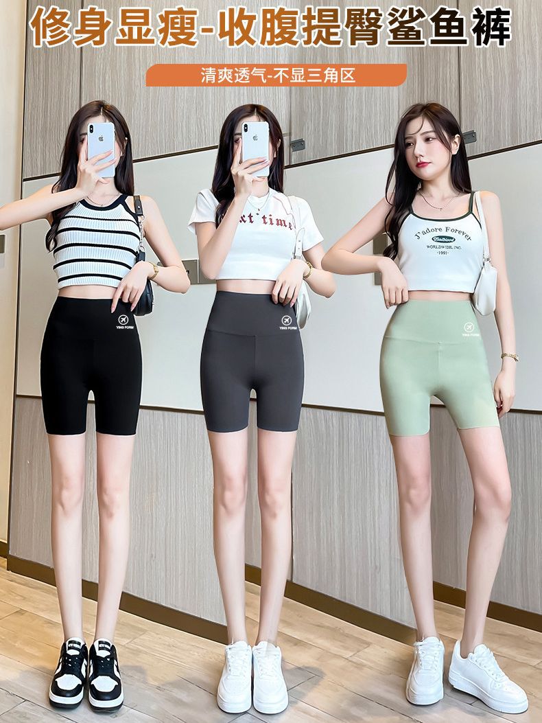 鲨鱼裤女外穿打底裤2024春夏新款收腹提臀芭比瑜伽裤无痕三分短裤