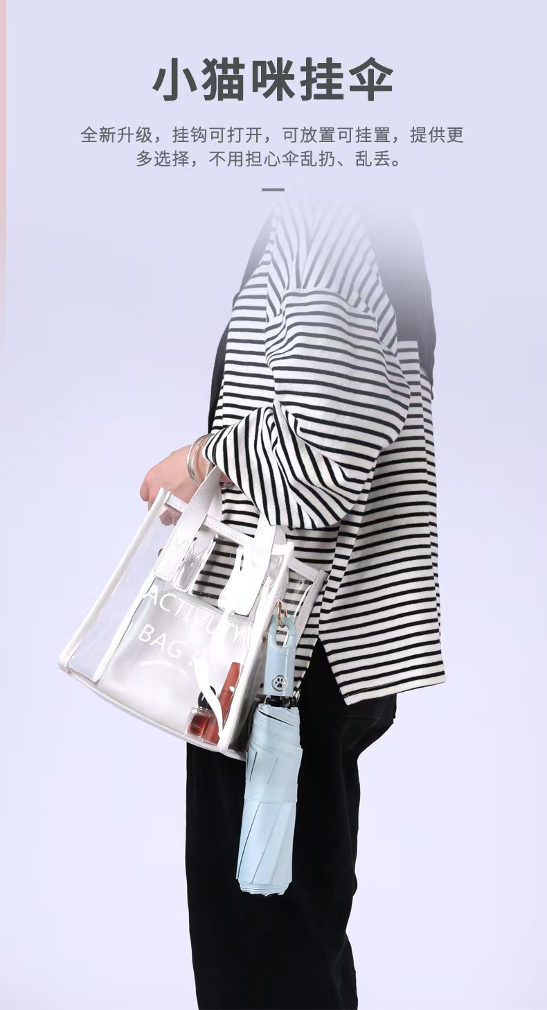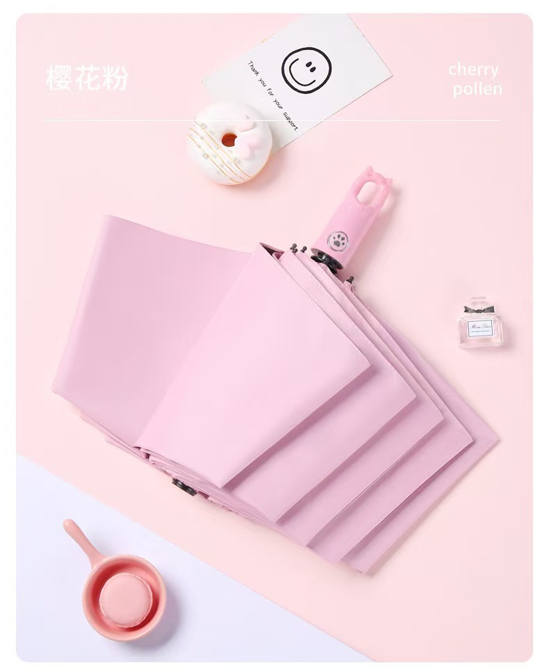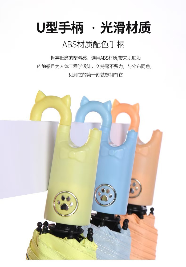雨伞猫咪挂钩自动伞便携折叠防晒伞企业员工福利礼品伞可印logo
