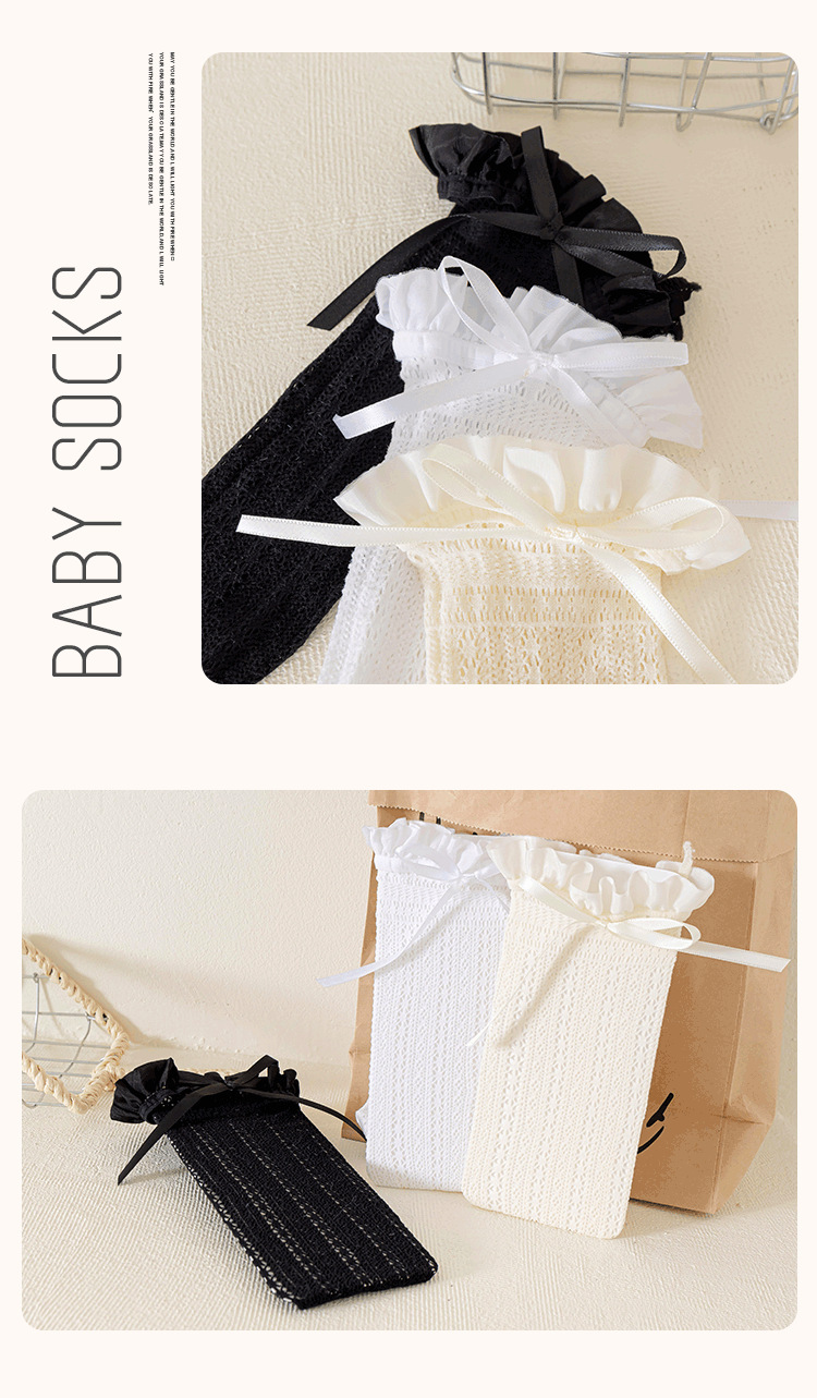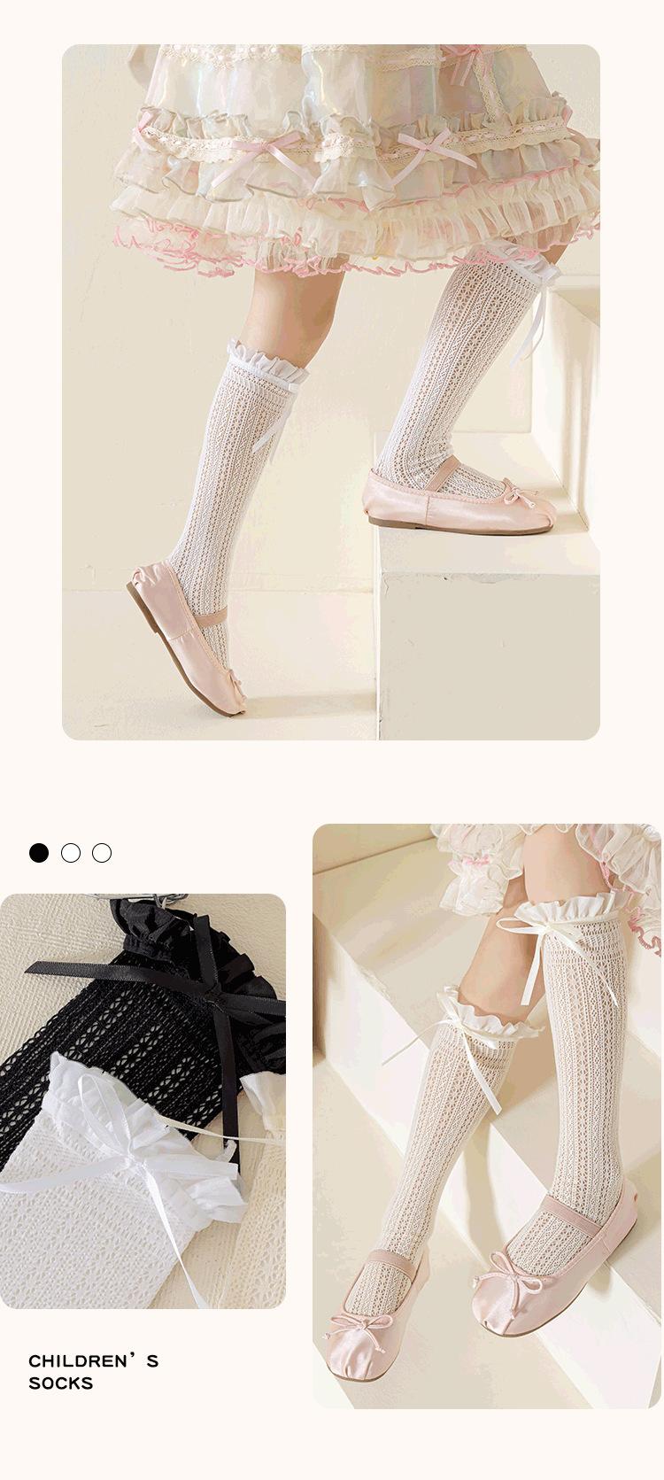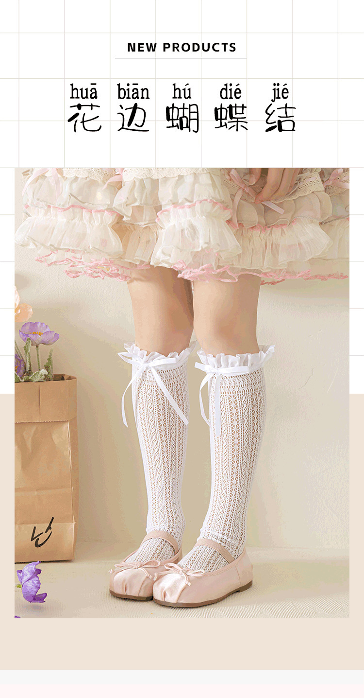 女童花边袜夏季薄款长筒蕾丝蝴蝶结洛丽塔韩版芭蕾宝宝女孩小腿袜