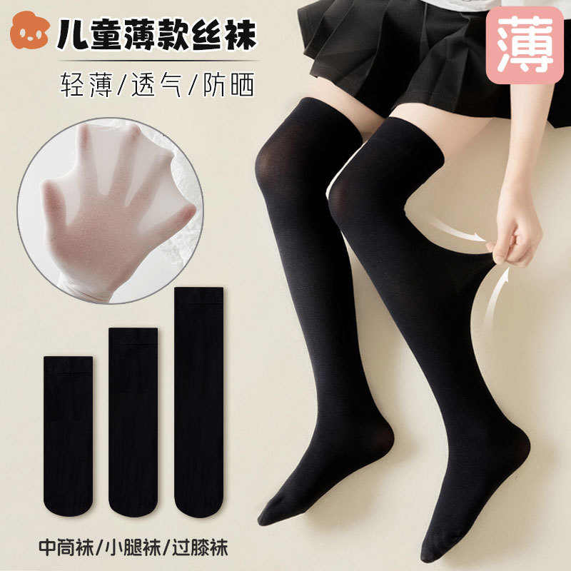 儿童长筒袜春夏季薄款黑白色男女小学生舞蹈表演高筒过膝冰丝长袜